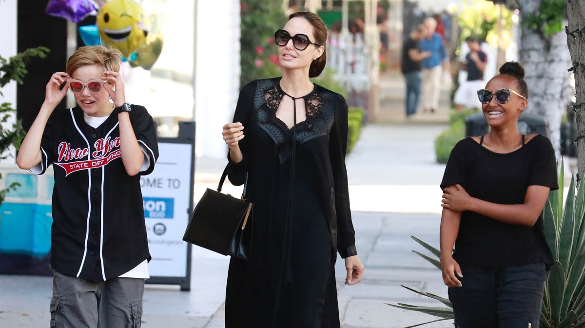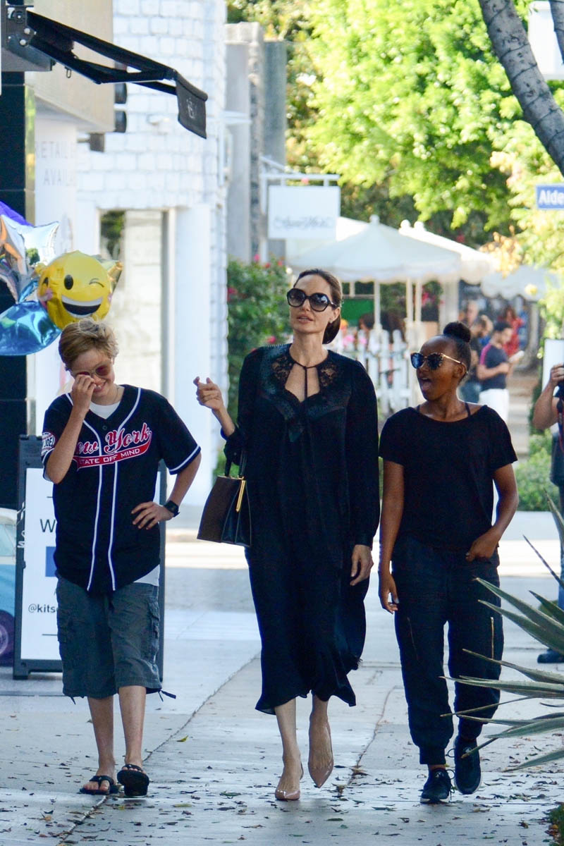 Angelina Jolie took daughters Zahara and Shiloh shopping at Kitson yesterday. KITSON. Is it 2005? How long has it been since we’ve mentioned Kitson?! As you can see, from these photos, there’s nothing to suggest that World War Brange has been happening for weeks now. Which, of course, is the idea here.