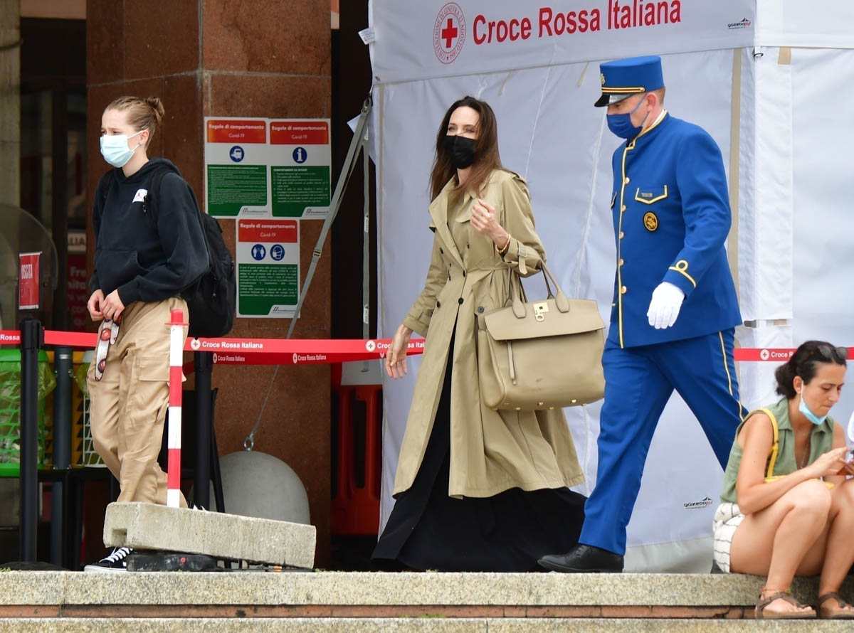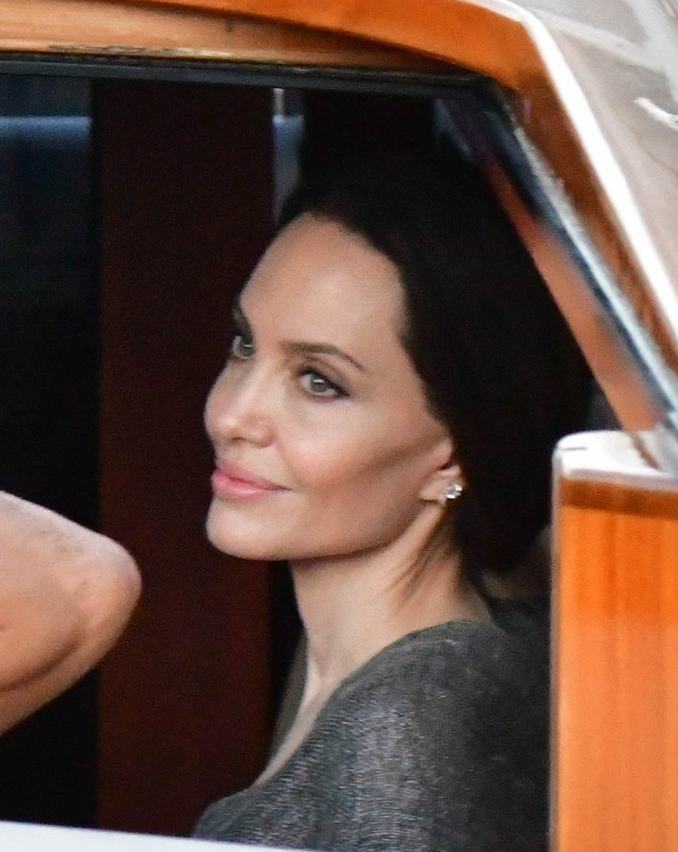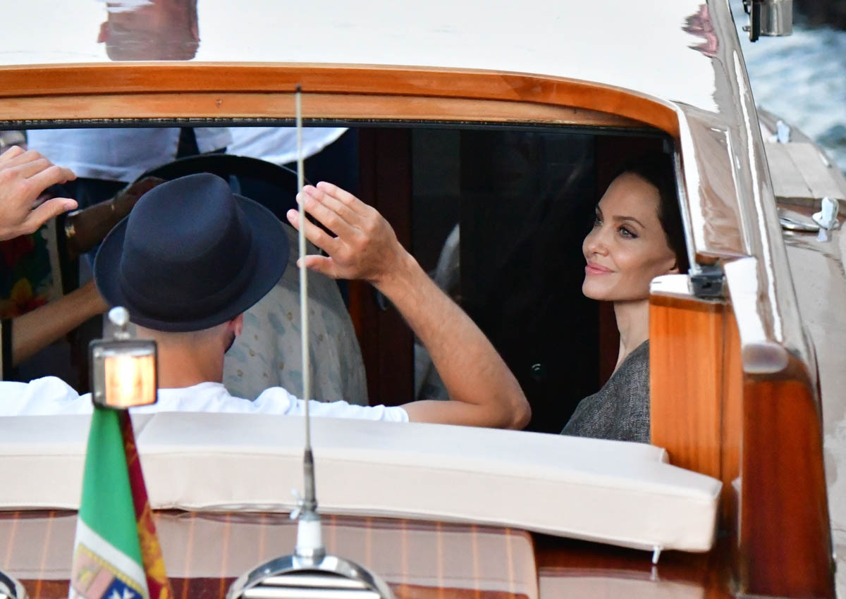 Meanwhile, Angelina was in Paris a couple of weeks ago with five of her children, after doing some work with UNICEF and the bee program. They turned that trip into a family holiday and evidently extended it to Venice as she was seen a few days ago with Shiloh around town and out for dinner. That face, though! Look at her face in these photos of her in the water taxi. Her bone structure is unreal.