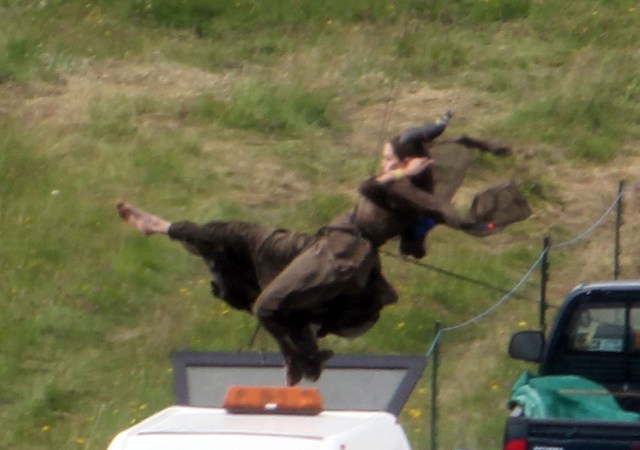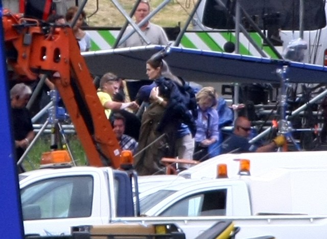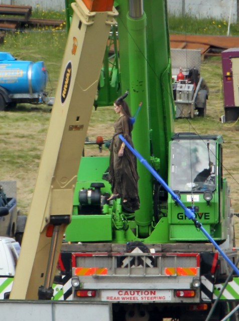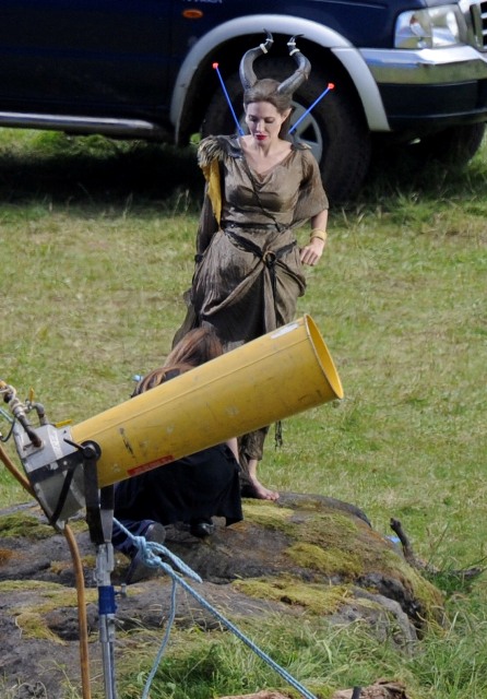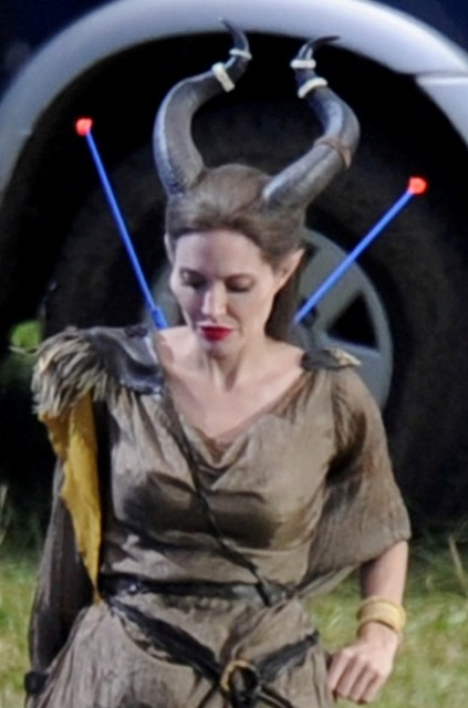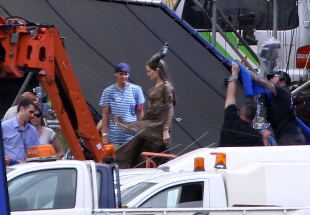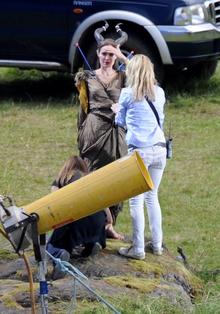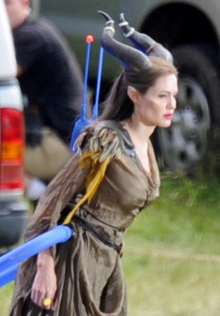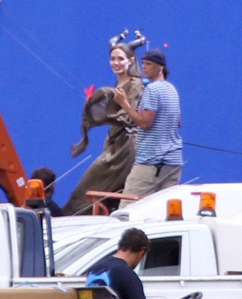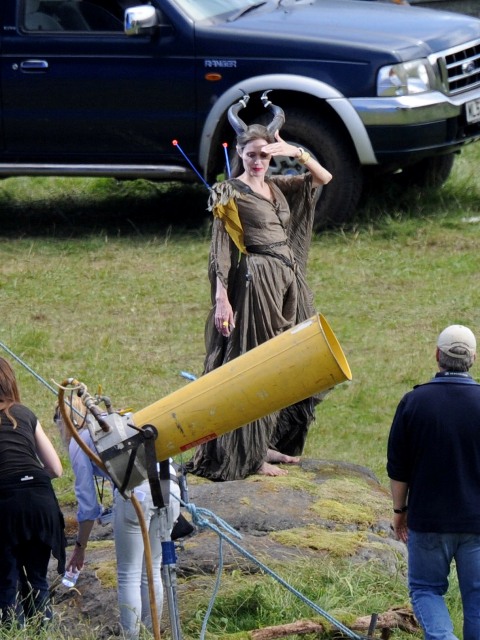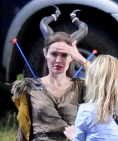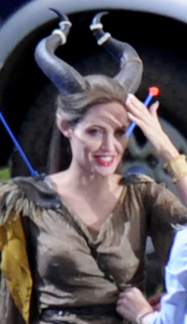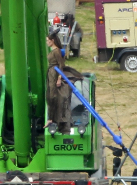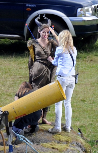 Angelina Jolie’s Maleficent can apparently fly. Here she is on set today in England suspended against a green screen. Am now very interested to see what they do with this in post and how real it will look when they’re done. Will it actually seem like the Jolie is airborne outside?