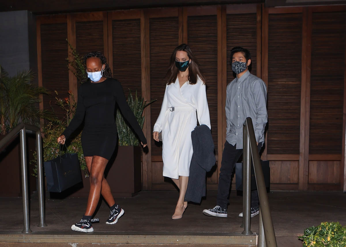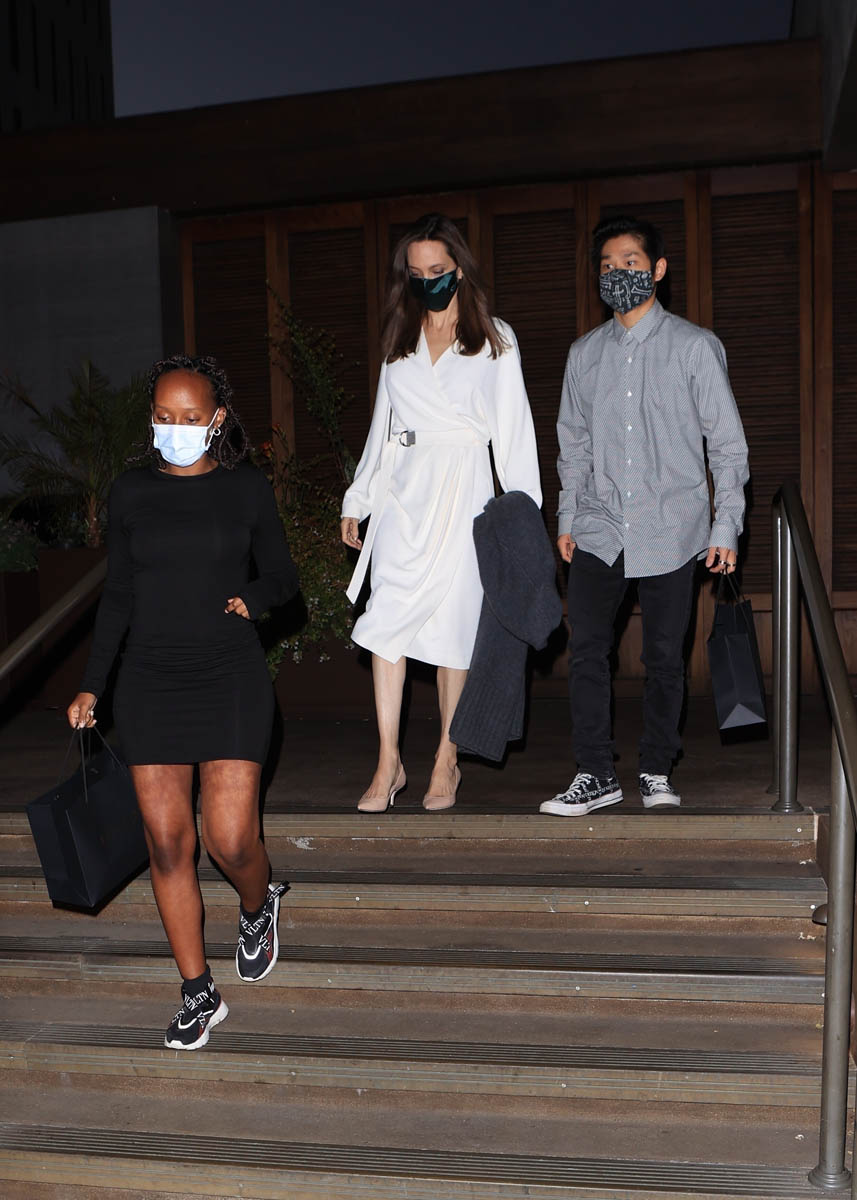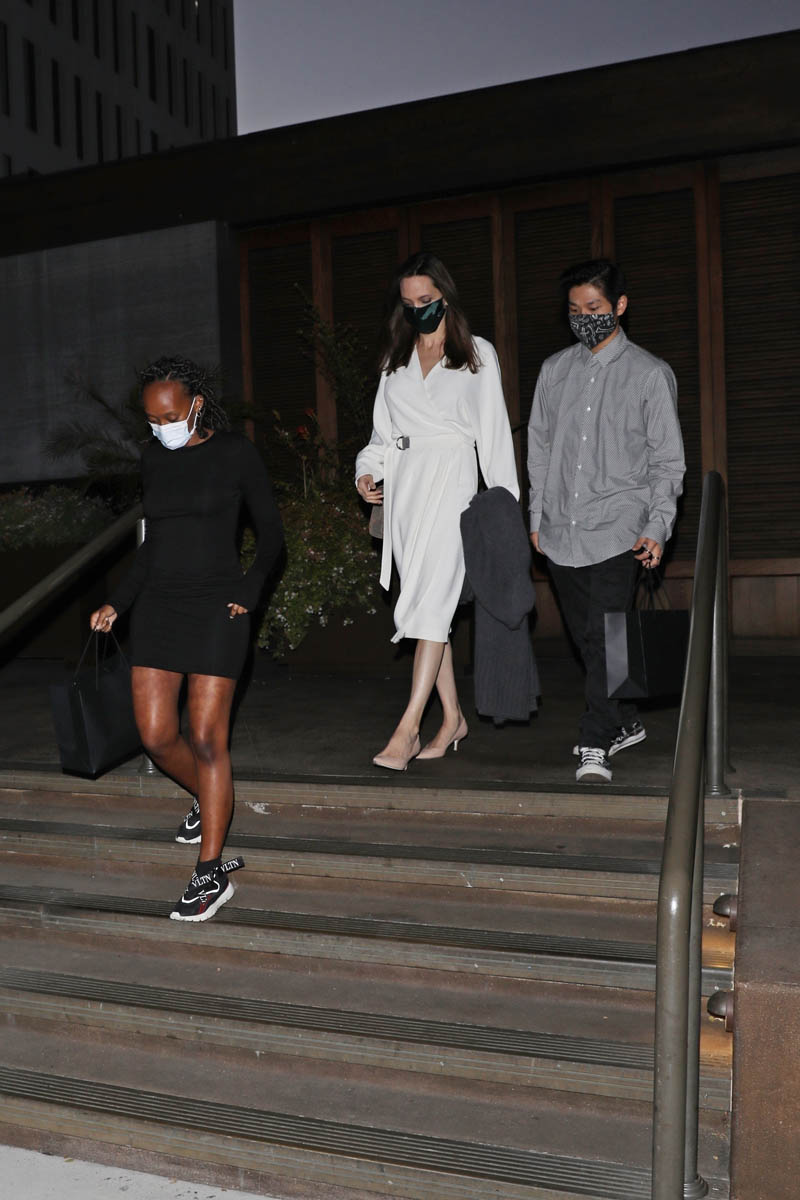 Angelina Jolie stepped out for dinner the other night in LA with two of her children, Pax and Zahara. The last time I posted about her she was in New York for her birthday with all of her kids and was seen at Jonny Lee Miller’s. Since then, there have been some efforts to suggest that the two might be reconciling but she hasn’t been back to NYC since so it’s kinda hard to fuel those rumours when they’re physically not in the same place.