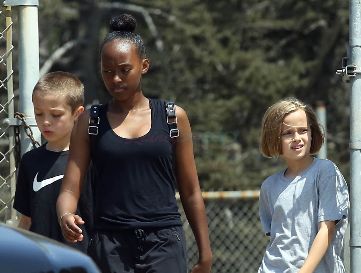As many of you have pointed out, when we see Angelina out with the children, and we see her often with the children, presumably strategically, she’s always dressed like she’s going to a business meeting. Needless to say, that wardrobe doesn’t work when you’re on a nature walk in the Hollywood Hills. But this wardrobe is closer to the, say, Jennifer Garner school of “regular mom” messaging. And if we’re working on public image, well, this is definitely an update.