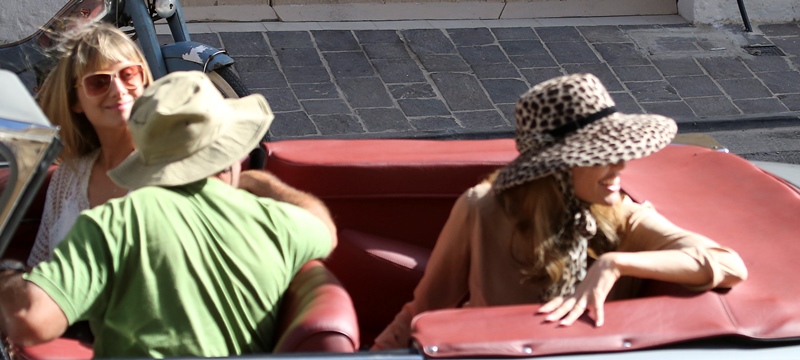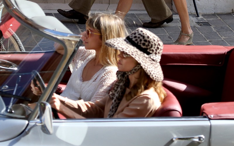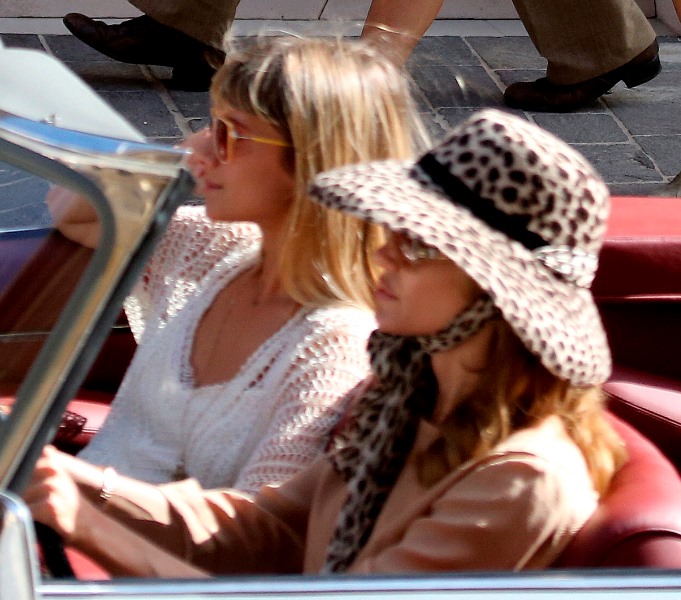 While Brad Pitt continues to promote Fury – with results – Angelina Jolie is in Malta continuing to shoot her film By The Sea. She was photographed in costume, very Liz Taylor, working on a scene the other day. Not sure who the blonde is but Melanie Laurent is supposed to be in the movie and…could be her? Hair looks similar. Can’t really get a good read on the features.