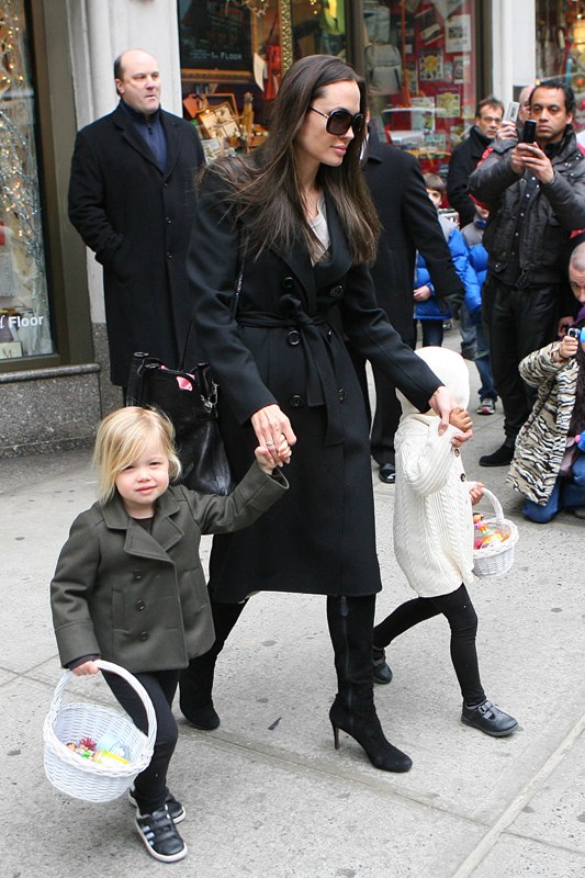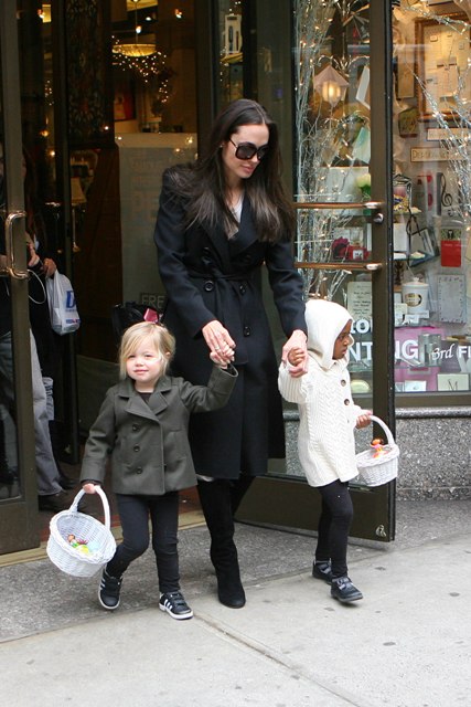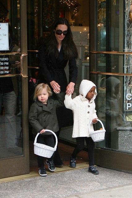 And for those of you who are baby obsessed – The Jolie took her girls shopping today. Look at them with their little baskets! As usual, Miss Zahara is telling you she’s not impressed. The Chosen One meanwhile is sticking it to Jennifer Aniston: You can bring your boyfriend to the Oscars but I’m still the perfect looking child.