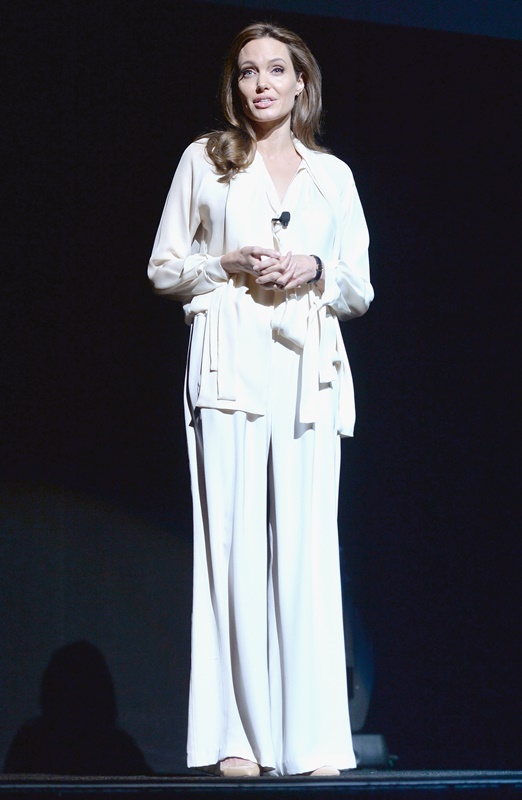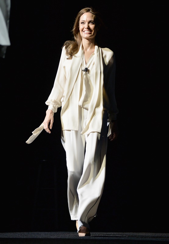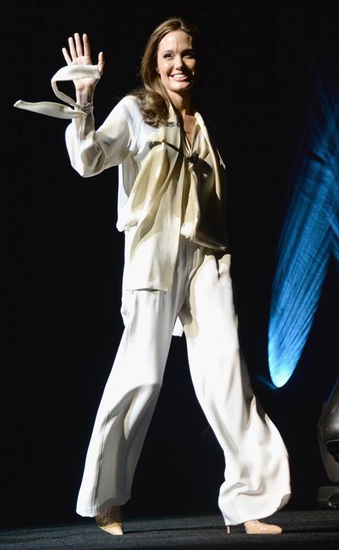 Angelina Jolie showed up for the Universal presentation at Cinemacon in Las Vegas yesterday. So, basically, the studio is putting their Oscar campaign for Unbroken right up front, and obviously. Yes, of course, it’s important that theatre owners feel confident in the film in that it can make money. And since she’s so great at the sell, putting her face on it is the best way to get them excited about carrying the movie on their screens at Christmas – because, for them, at that time of year, it’s money first and then art.