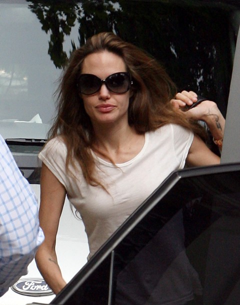 Angelina Jolie in Prague yesterday actually wearing jeans and not trousers for a change. She looks good in jeans non?