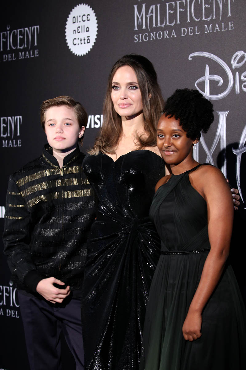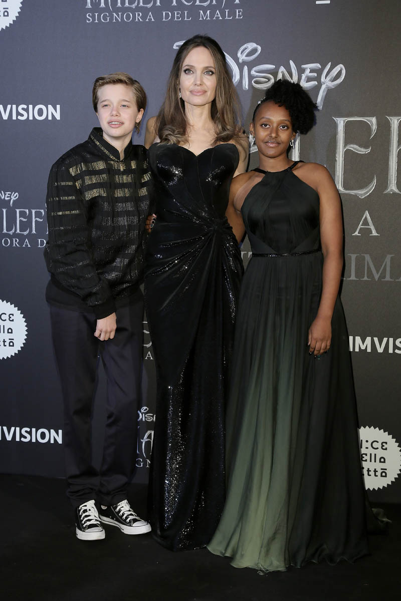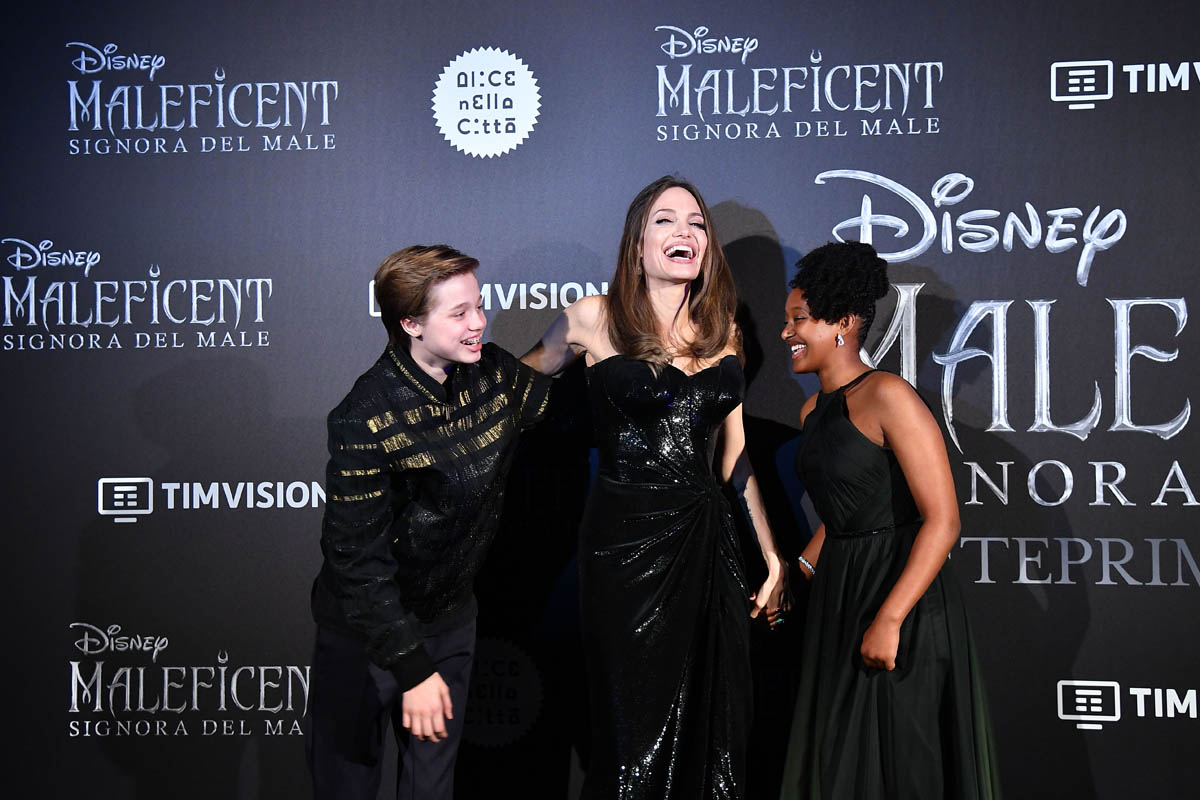 Angelina Jolie was joined by two of her six children, Zahara and Shiloh, in Rome for the European premiere of Maleficent: Mistress of Evil last night. Earlier in the day she wore the Outfit of the Week and for the red carpet she went back to bombshell black, Versace, not a new silhouette for her, sure, but it’s worn with her renewed attitude, with the energy we’ve been getting from her the last few months. Like I said yesterday, Angie is feeling herself.