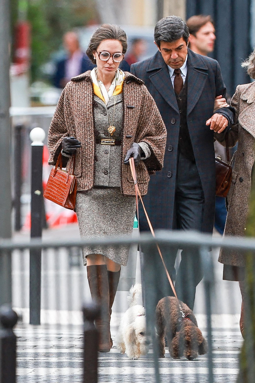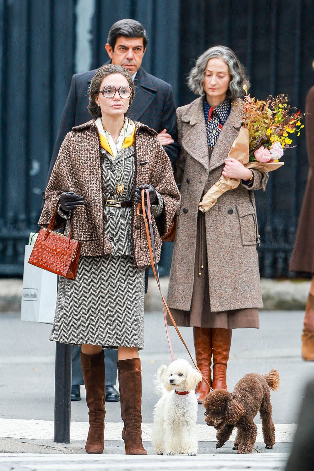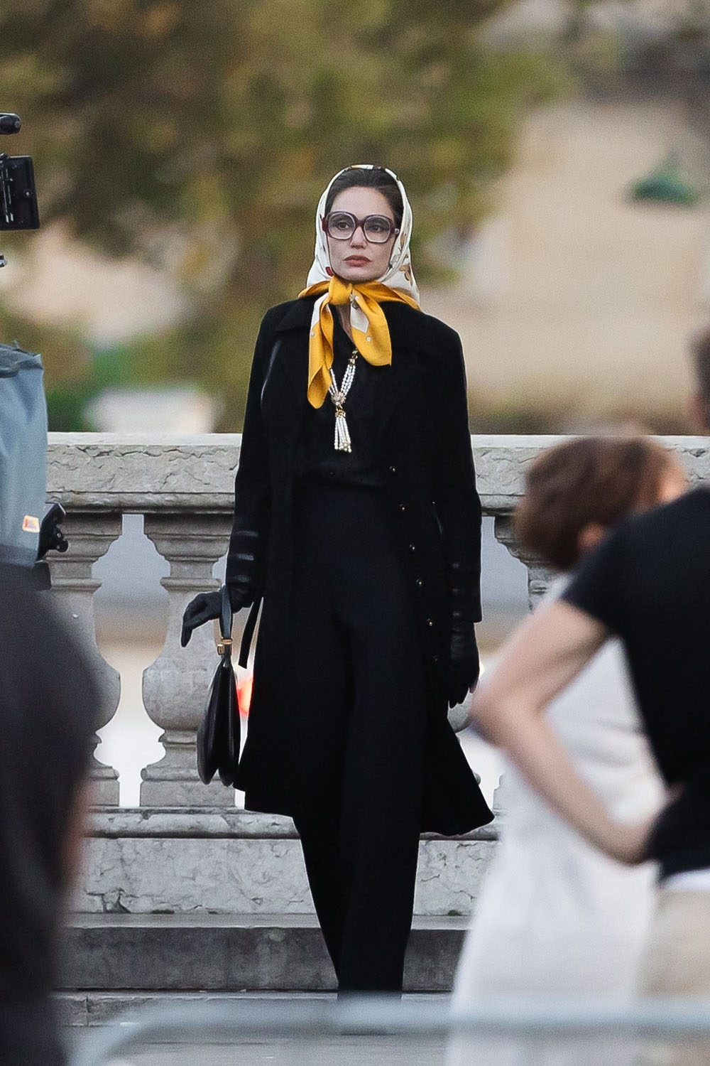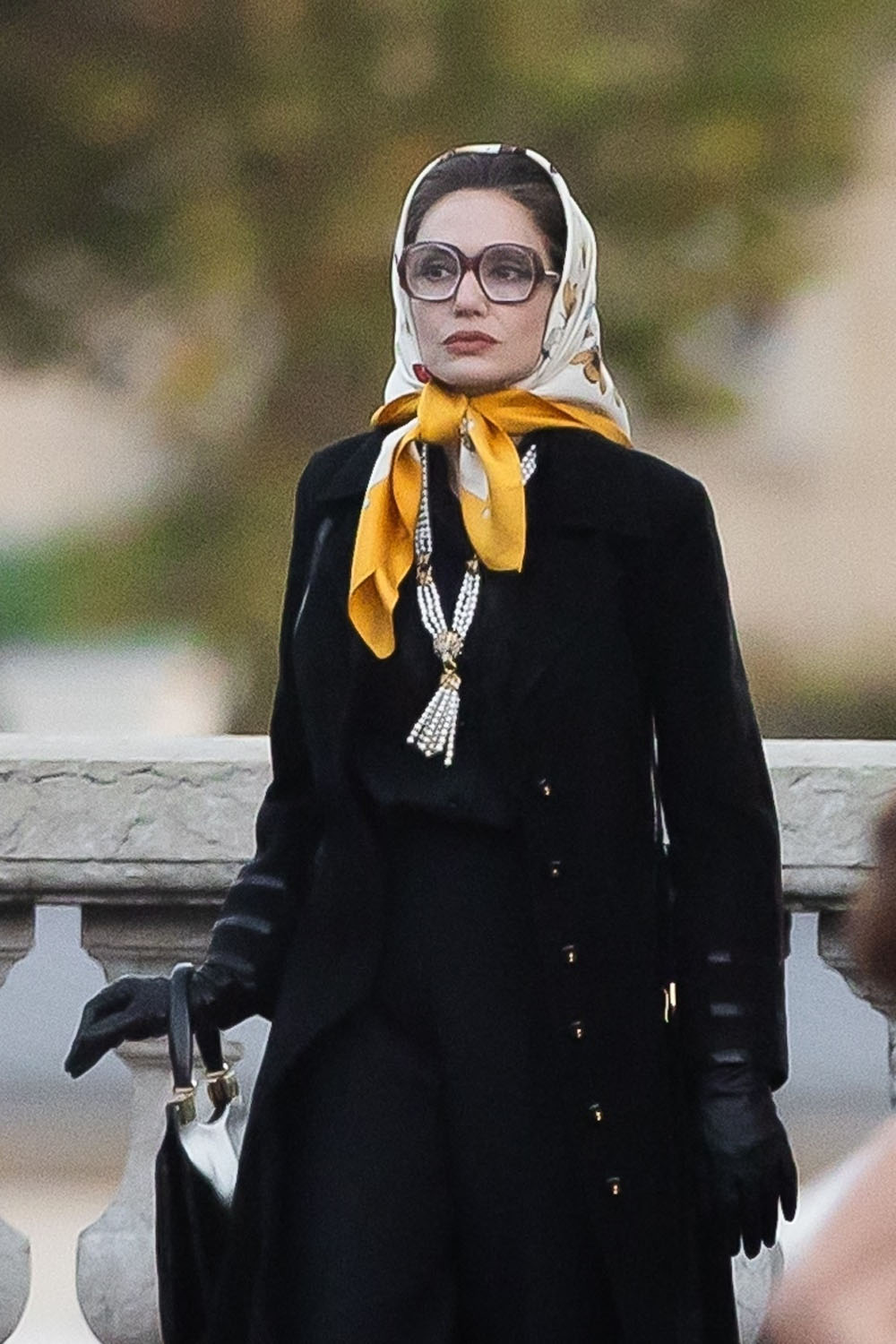 Just days after the first official photos of Angelina Jolie as legendary opera singer Maria Callas were released, here is Angelina on the set Maria, filming in Paris. I am IN LOVE with her oversized glasses and scarf combo. Also, the fur coat is either vintage itself, or made from vintage items, as the film’s costumes will not utilize any new fur. We love a legend committed to animal rights!