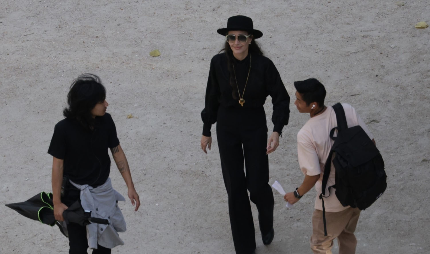 Angelina was joined on set by her oldest sons, Maddox and Pax. They both have some gear that looks like they’re working on the film in some capacity. They both have interests in photography and filmmaking, especially Pax, so that wouldn’t be surprising, though neither is listed among the film’s credits on IMDb (which is often not updated until after production, so that’s not shocking). Literally nothing makes me feel older than Angelina Jolie’s kids growing up. I have actual young people I know in my actual life that I knew as babies who are now beginning their independent adult lives and they do not make me feel as old as even the concept of Angelina Jolie’s kids beginning their careers.