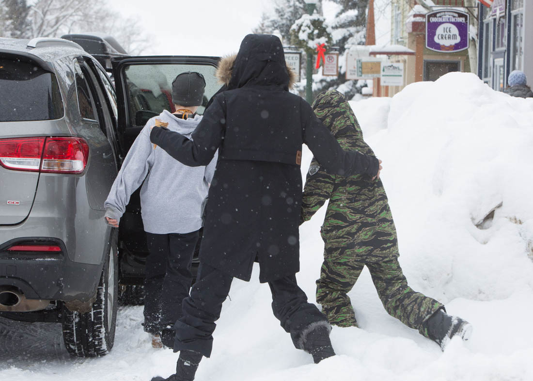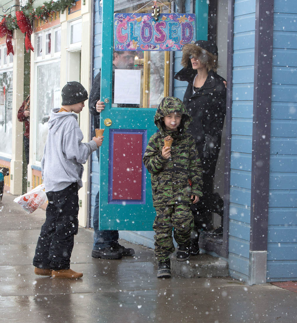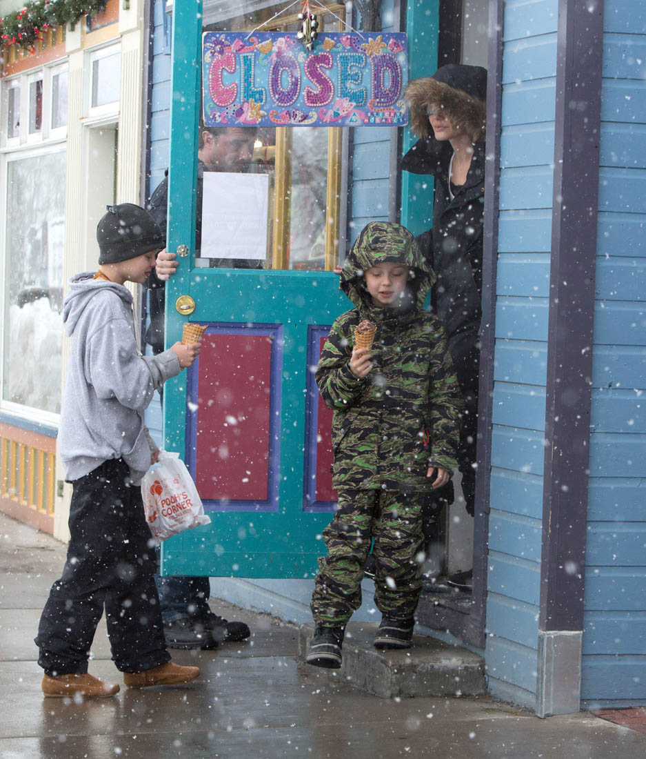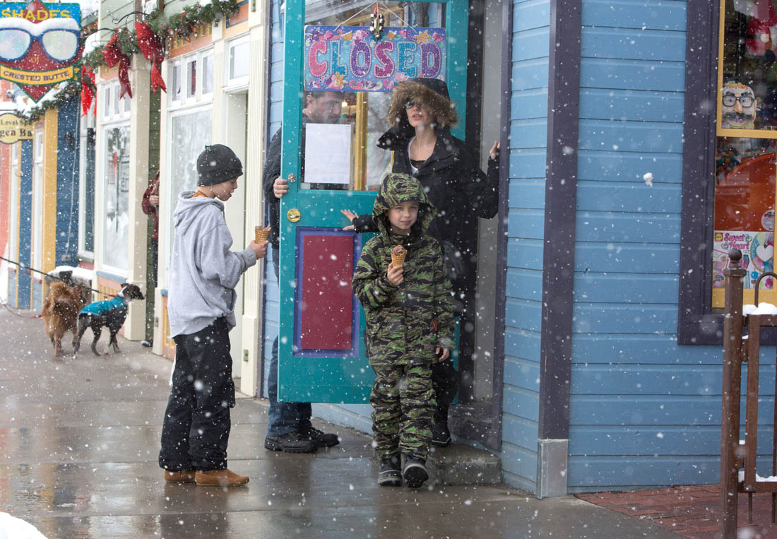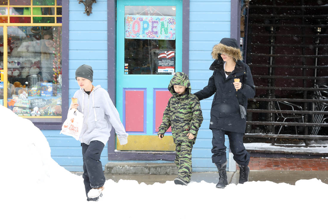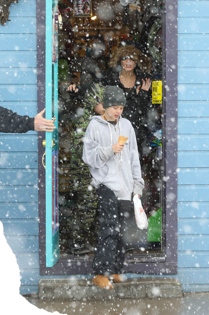 Angelina Jolie and the children were in Crested Butte, Colorado for NYE. Here she is with Shiloh and Knox out for ice cream. The Daily Mail has other photos of her with Vivienne and in some of the shots you can see that Mariane Pearl is with them. Mariane Pearl is a journalist and the widow of the late Daniel Pearl. Angelina Jolie played her in A Mighty Heart. Mariane wrote about their friendship for Glamour Magazine in 2014. So they’re on holiday together. And obviously they are still close.