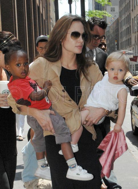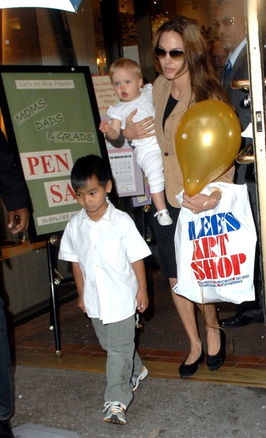 First a shopping excursion with big brother Maddox, next the two girls in both arms after lunch with Pax trailing behind even though there’s an assistant readily available. By the way, A Mighty Heart is due out in theatres this coming Friday, June 22nd.