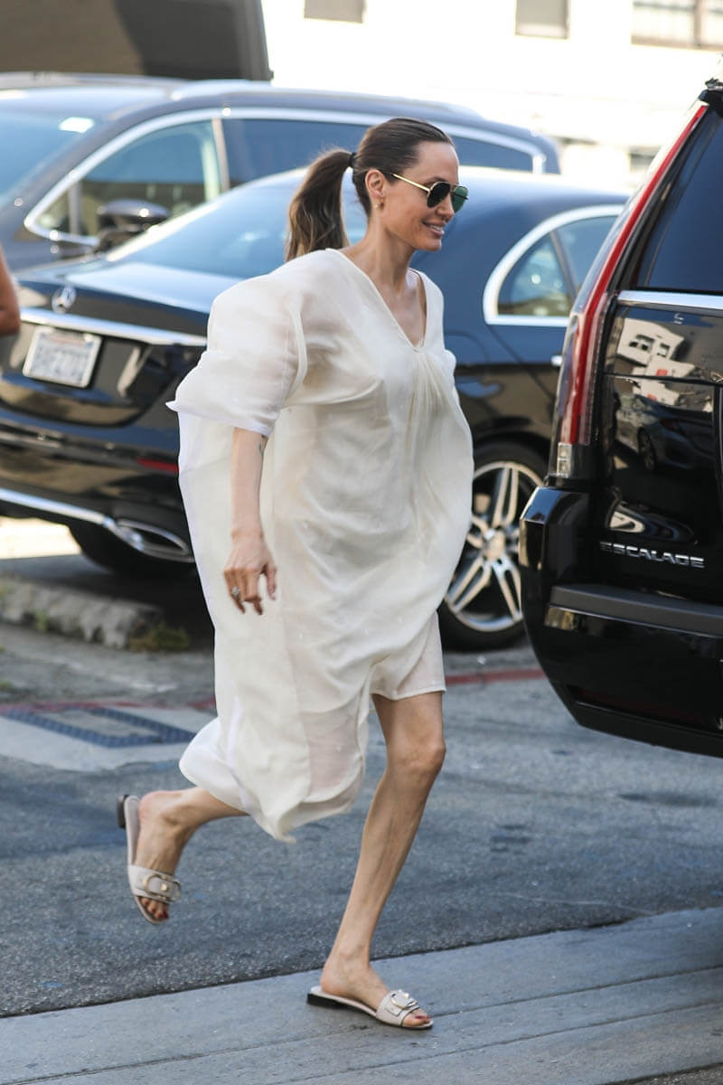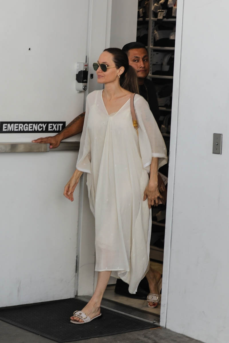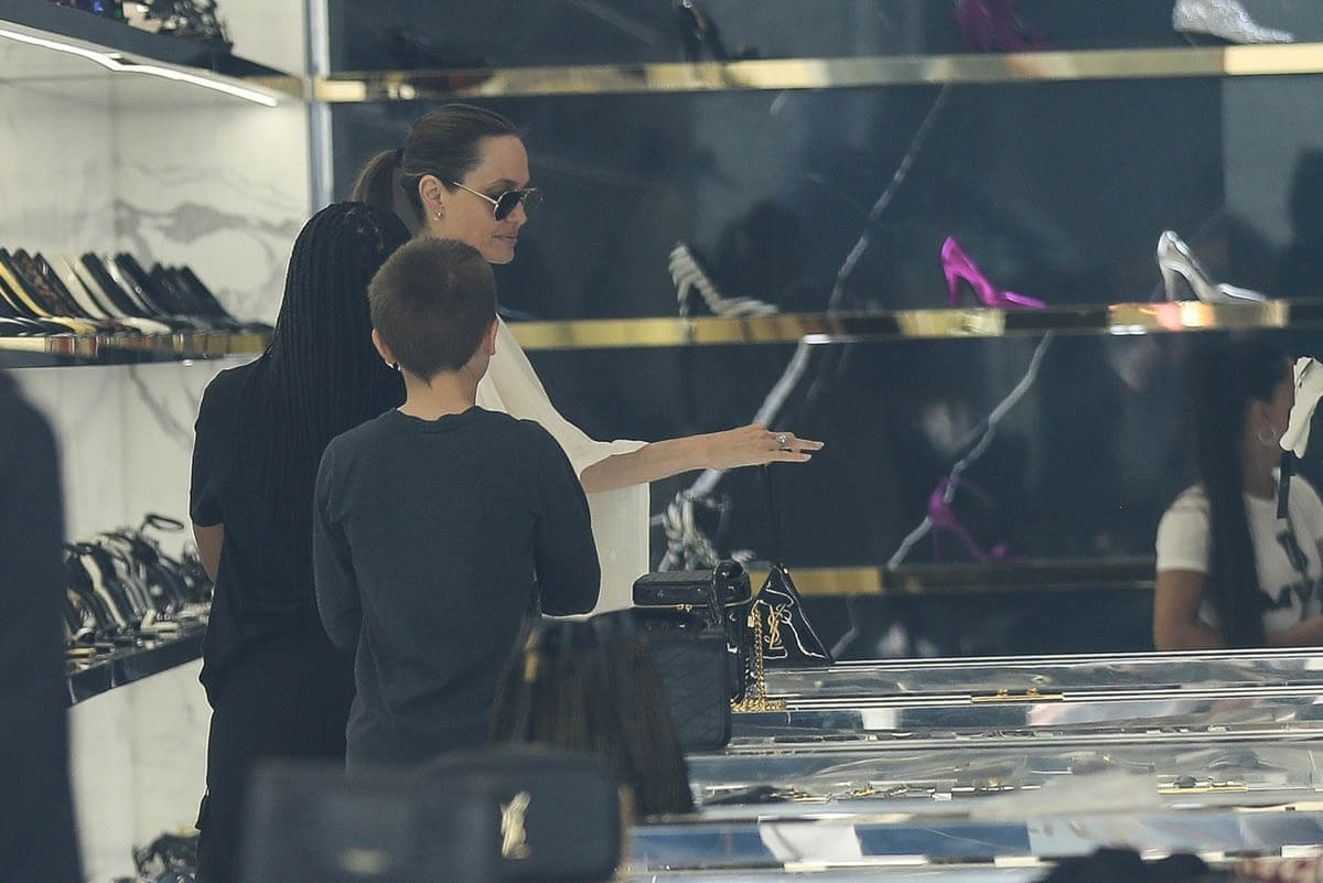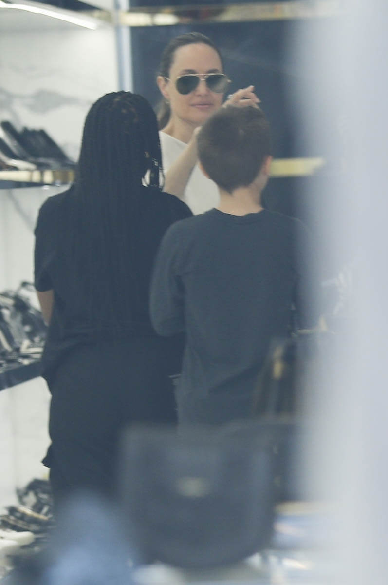Attached: Angelina and the kids shop at Yves Saint Laurent in Beverly Hills on August 5.