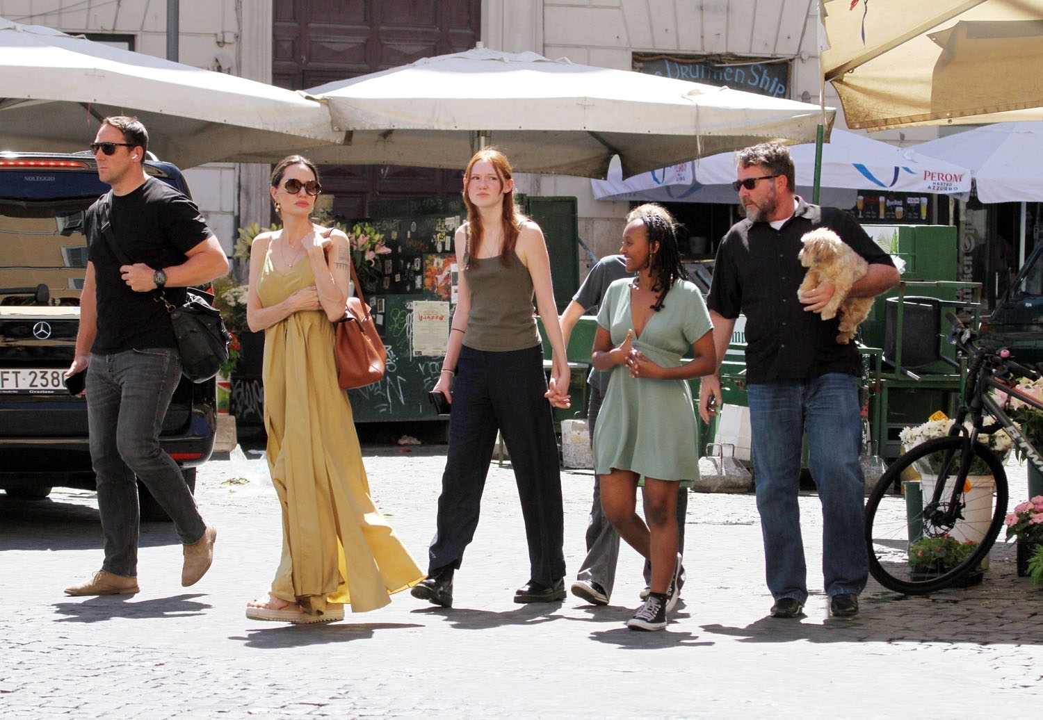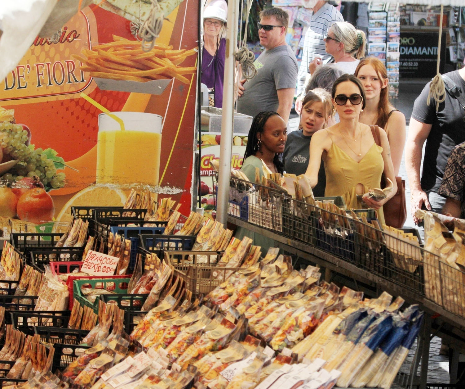 Angelina has been directing Salma Hayek the last few weeks in Rome which is where they spent the Fourth of July long weekend, and part of it together. On Saturday Angelina, along with daughters Zahara and Vivienne, were seen at a cooking school with Salma and her daughter Valentina. Afterwards Angelina went shopping with her kids and was seen talking to local vendors. Another reminder that Angelina and Salma are close, professionally and personally. I mean, if they’re spending all kinds of time together on set and then spending even more time together off set, it suggests a pretty strong friendship.