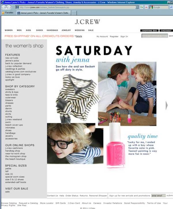 Remember when Jenna Lyons of J Crew was featured in a promotion for the label with her son Beckett and his toenails painted pink? The photo was gorgeous and loving and sweet. I loved their faces, smiling at each other, and her holding his delicious chubby bun little feet in her hands.