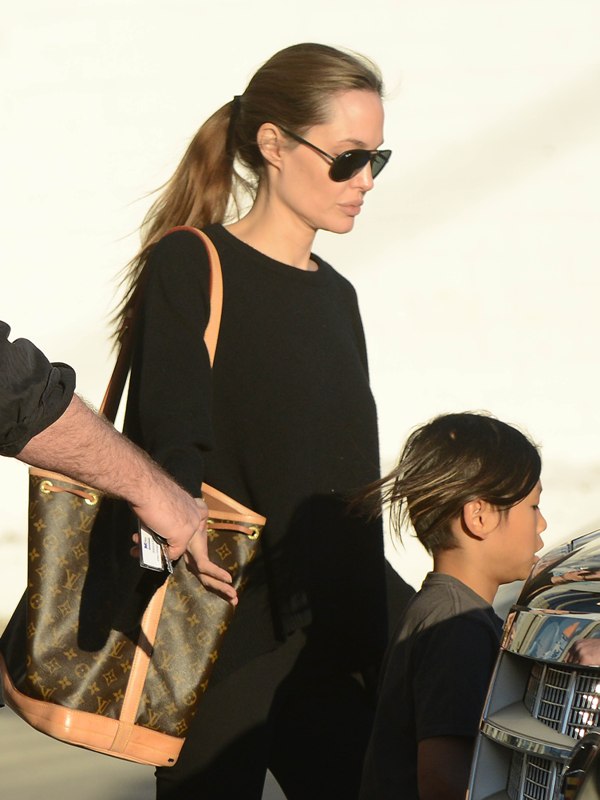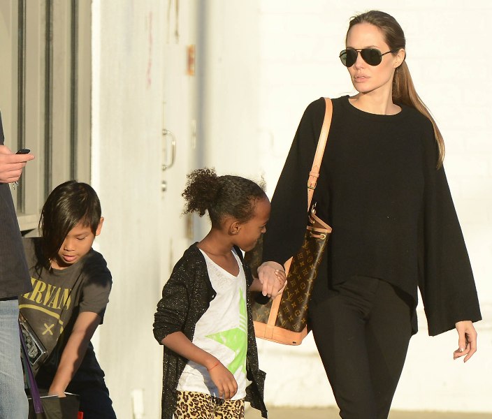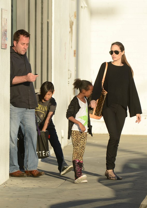 Here’s Angelina Jolie with Pax and Zahara yesterday shopping in LA. Pax is now 9. Miss Z just turned 8. The twins will be 5 in the summer. The Brange no longer have any infants in the house. It should be time soon, non?