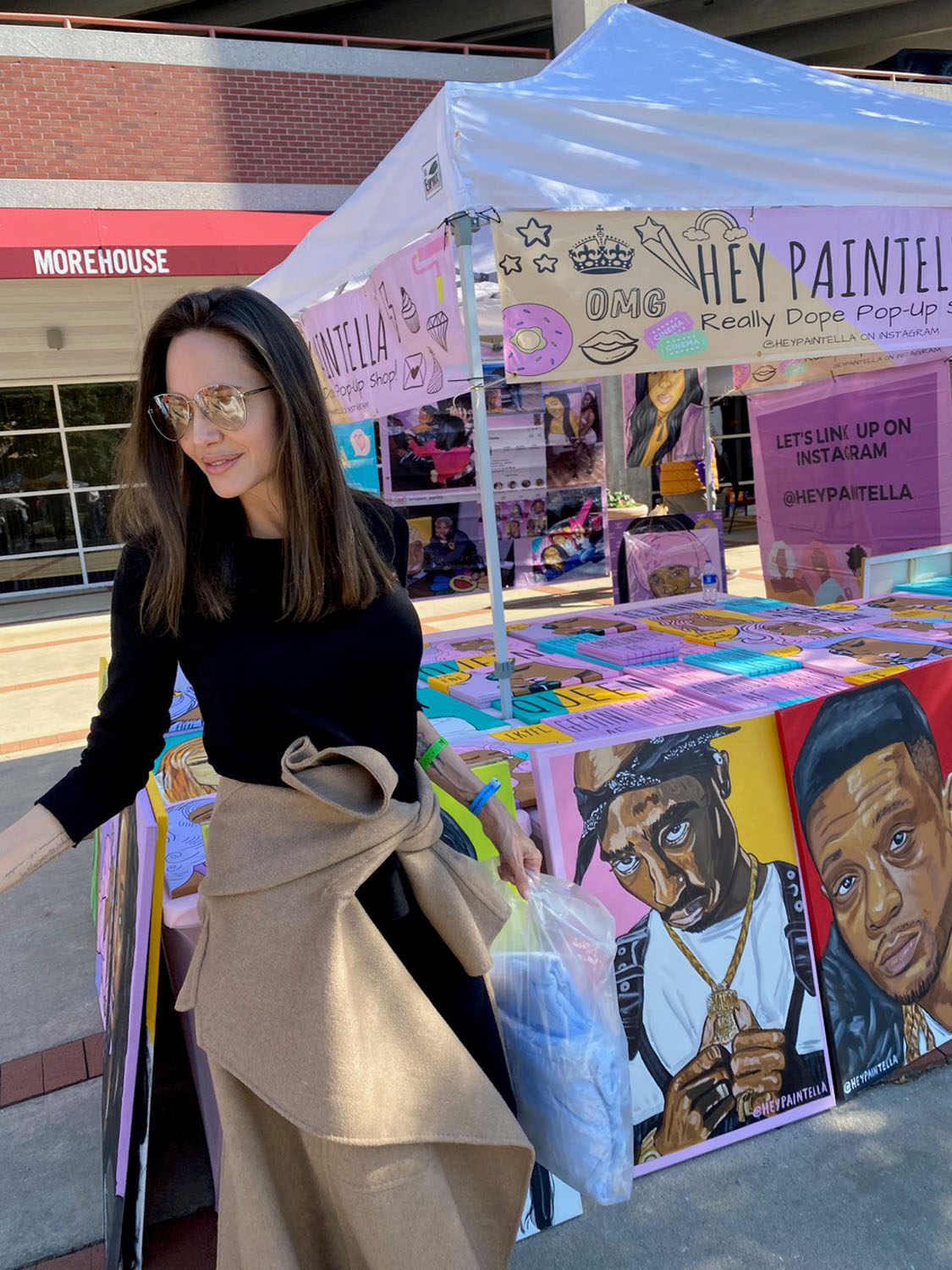 As we know, Angelina Jolie is a Spelman Mom since her daughter, Zahara, began school at Spelman College, an HBCU, in August. This past weekend was the combined “Spelhouse” homecoming of Spelman College and Moorehouse College in Atlanta (they are not co-ed schools). Angie showed up for Zahara: