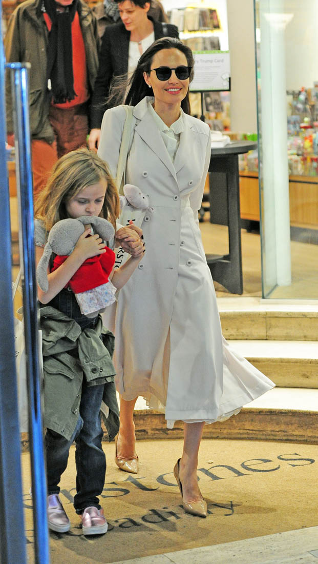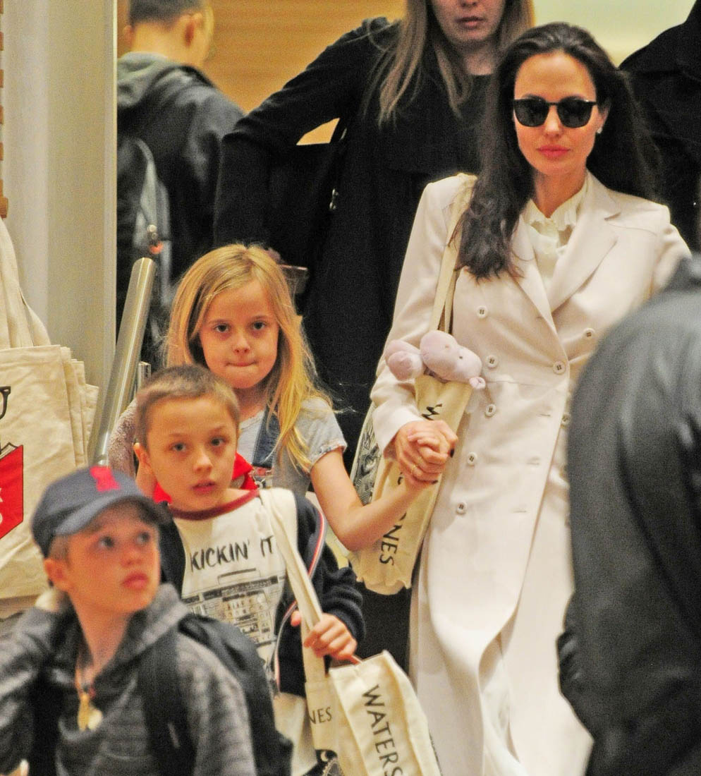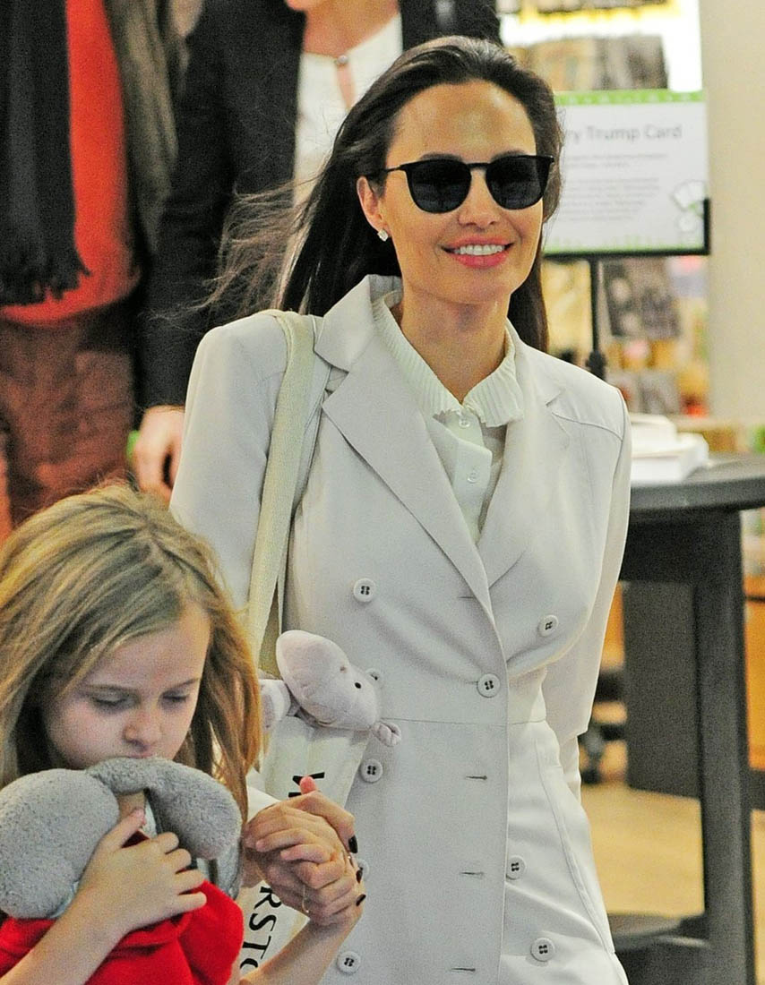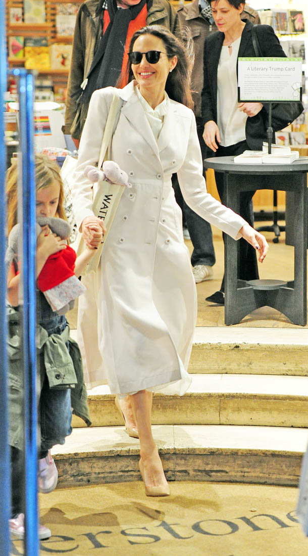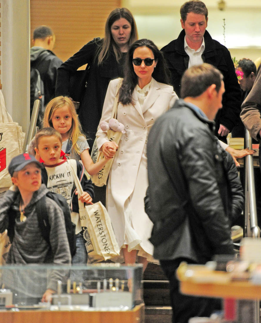 As you know, Angelina’s kids are with her on this work trip. And when she wasn’t at work, she was with them at the bookstore. Apparently Knox is really into Harry Potter: