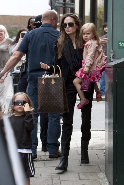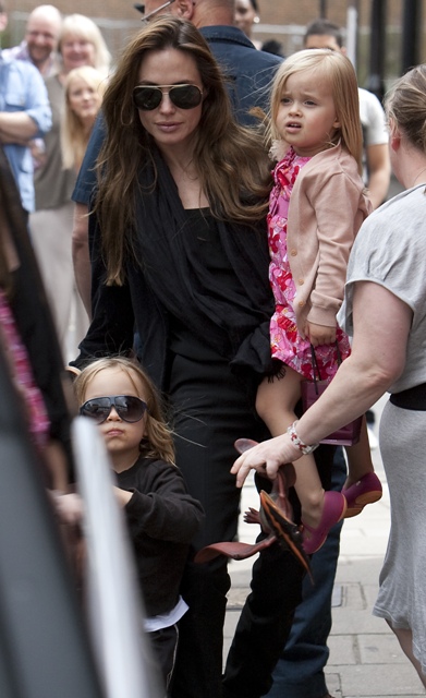 Angelina Jolie arrived back in London yesterday after a few days in LA with Shiloh and Miss Zahara. Today she was spotted with all of her children heading to the theatre. Not sure exactly what they saw but here were the options: