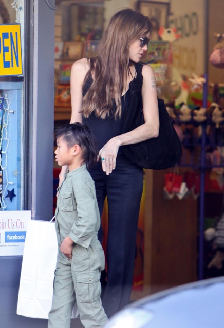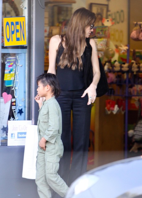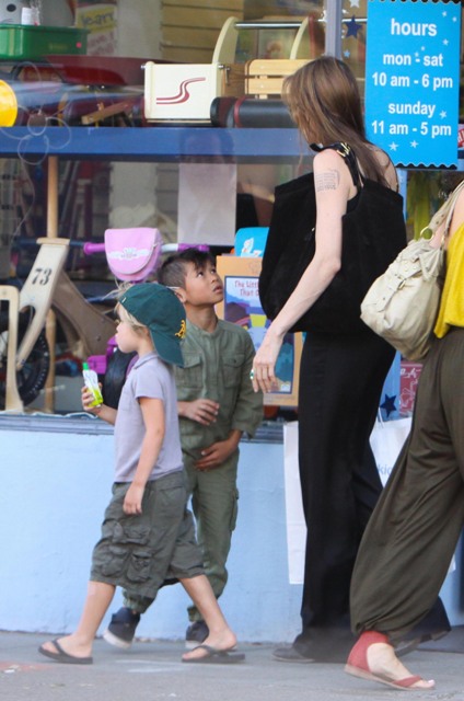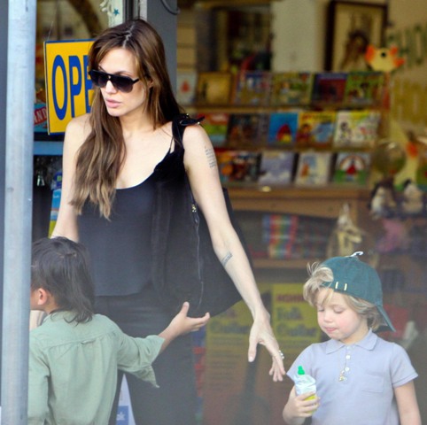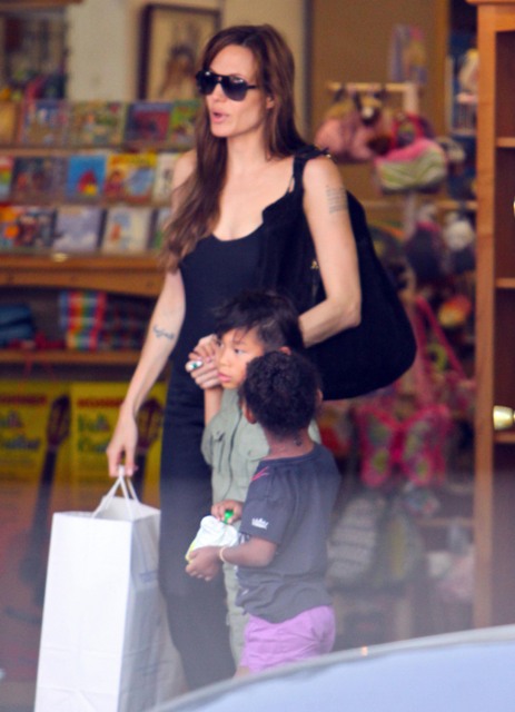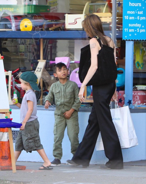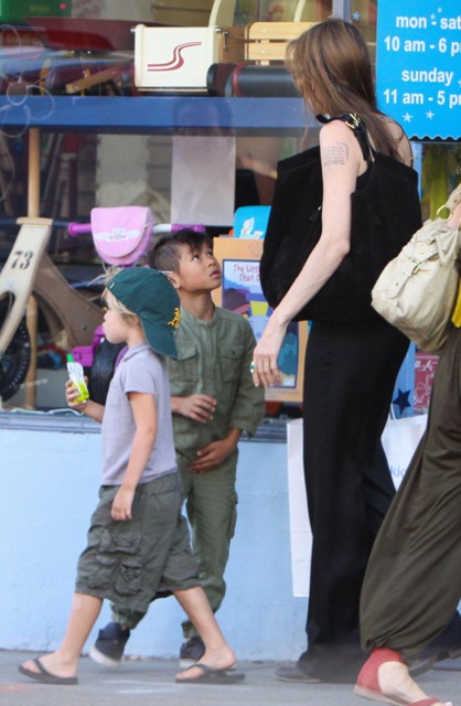 According to this week’s In Touch, “Paxie” doesn’t call Angie “ma”. Instead, all the kids supposedly refer to their nanny as their “mom” because the Jolie is never around and hates them and goes off and shoots heroin into her eyeballs. Or something. The magazine cites a witness who claims to have seen the Jolie-Pitt children a few days ago eating at the Claremont Hotel Club & Spa and “Paxie” and “Mad” threw down over some condiments and were overheard pleading with the “mother” nanny to take sides. This, suggests In Touch, must mean that Angelina hates her kids.