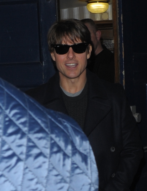 Attached – Tom Cruise in London this weekend after seeing Cats with Nicole Scherzinger. Is he recruiting at musicals now?