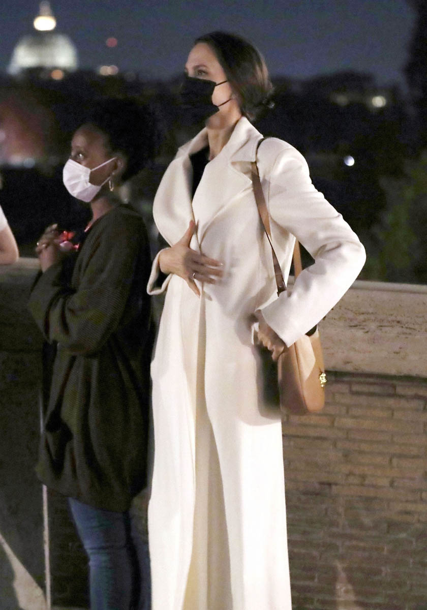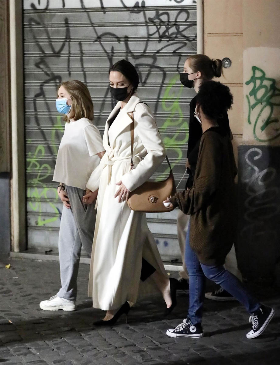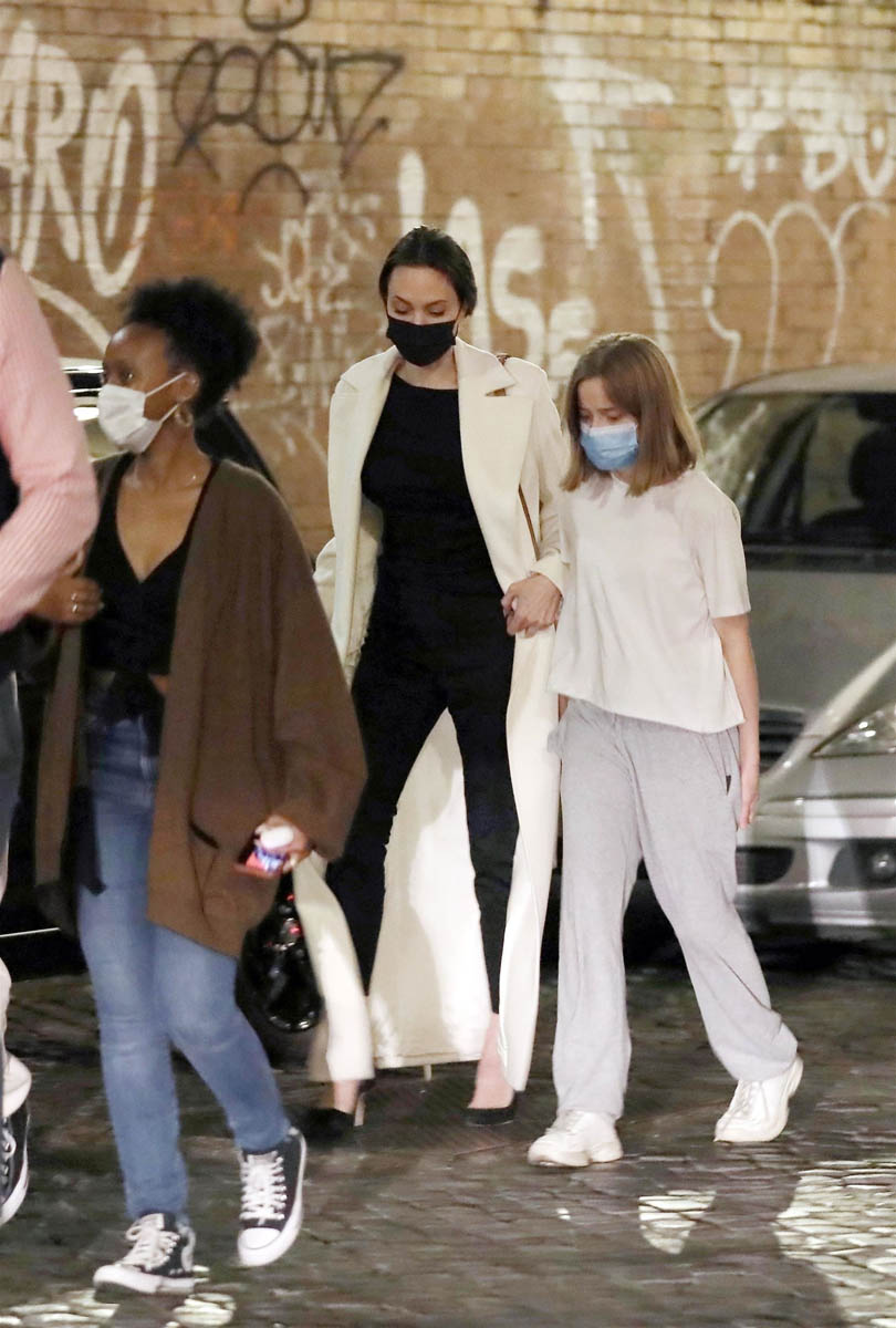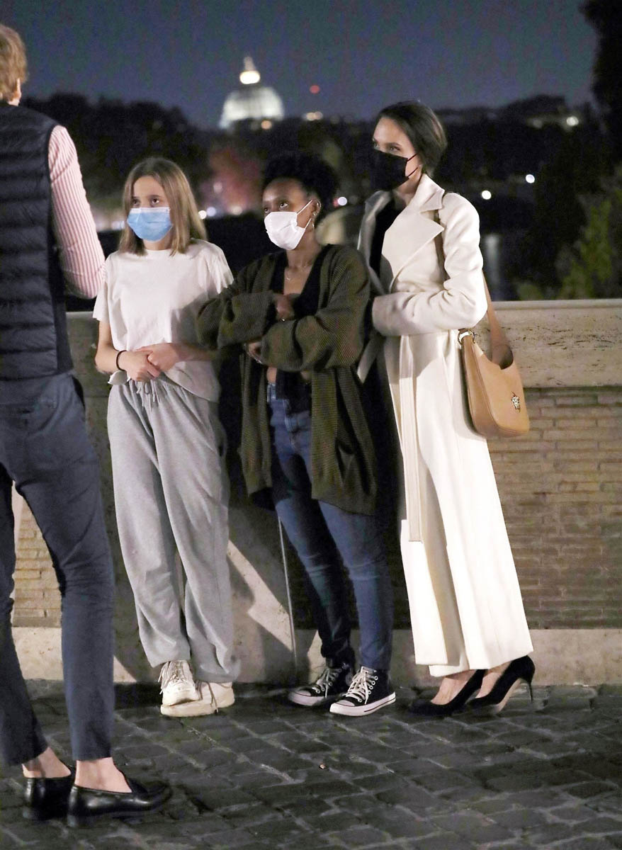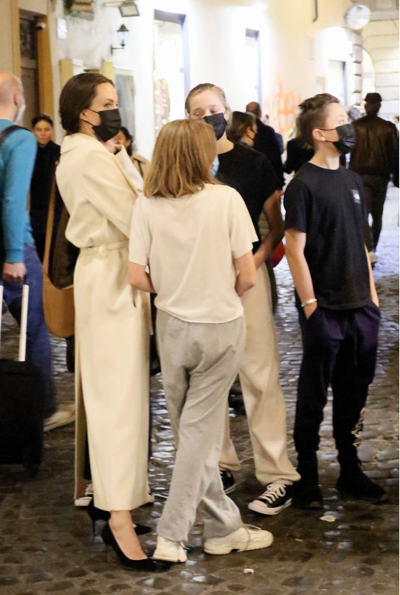 Angelina Jolie is promoting Marvel’s Eternals in Europe and attended the Rome photo call and premiere the other day, joined by Zahara and Shiloh on the red carpet. Turns out they weren’t the only two of her children who made the trip with her.