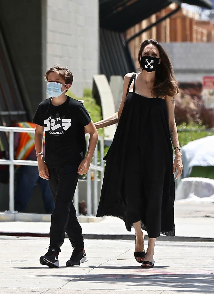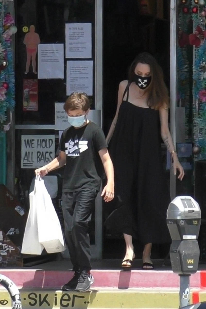 Angelina Jolie and son Knox went shopping yesterday in Los Feliz. I don’t know what it is about these photos, because it’s not like you can see her face, but they’re so… visually pleasing. I think it’s because everything matches?