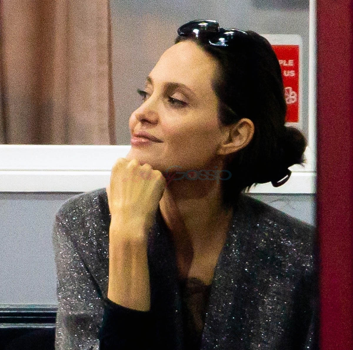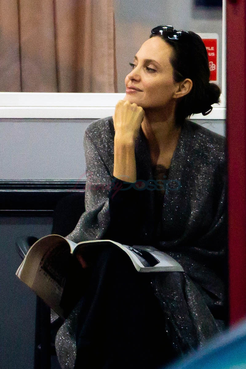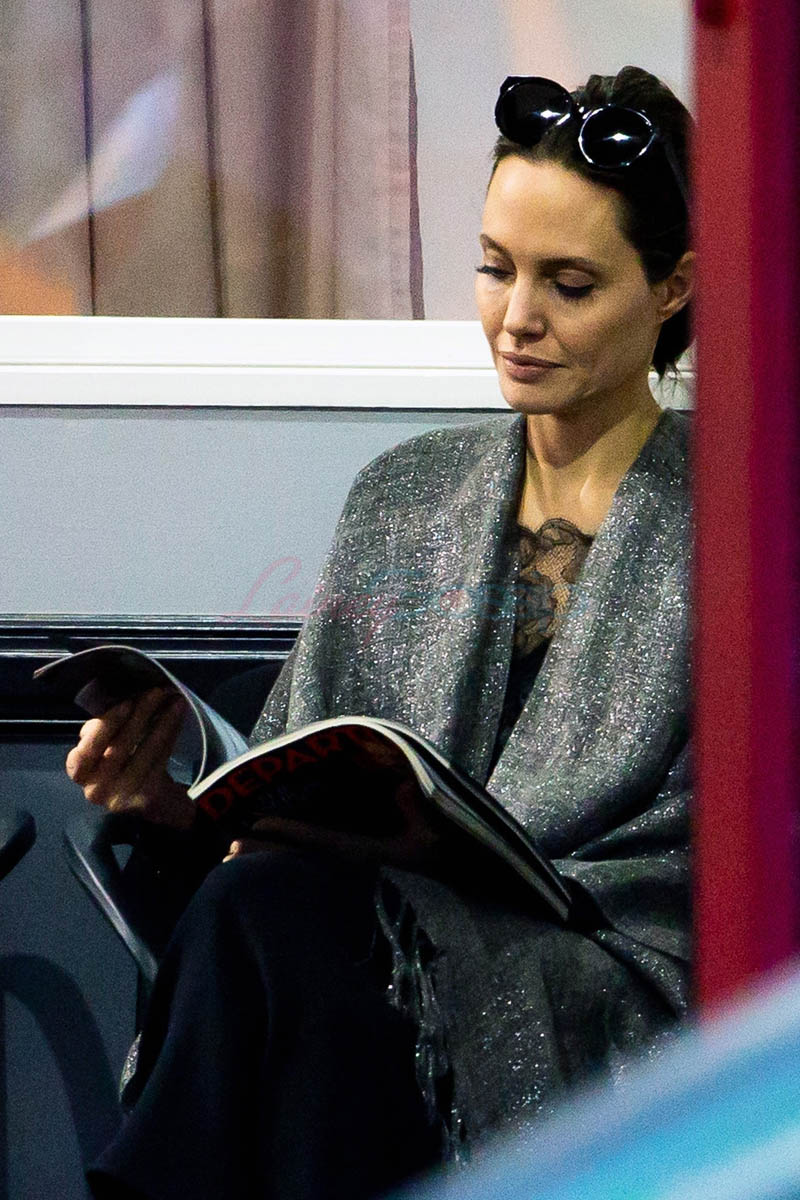 As you can see, Angelina passed the time reading a magazine. Also a parenty thing to do…but kinda old school? I feel like most parents have phones now and they’d be texting or browsing or on Instagram. I wish I could make out the cover. Definitely isn’t a celebrity tabloid. Maybe it’s just something that was sitting around that she just picked up and started flipping through. Or maybe she was super organized and tucked some reading material from home into her tote before she left. I always have a book with me. A book is actually a great way to not have to talk to people. I used to always take a book to Jacek’s hockey games and pretty soon he knew to stop asking me if I saw his assist or goal. Is it the same for kids? Are you a bad parent if you miss seeing one of your kids’ key moves? Do the other parents judge you if you’re not paying attention?