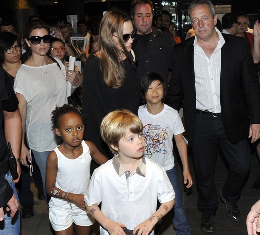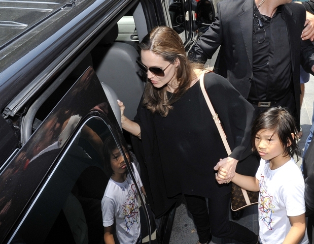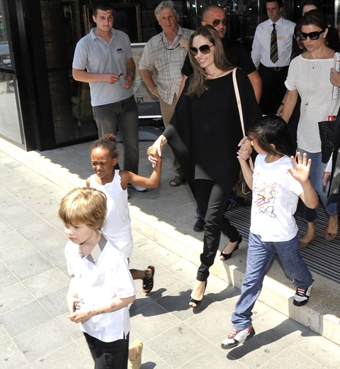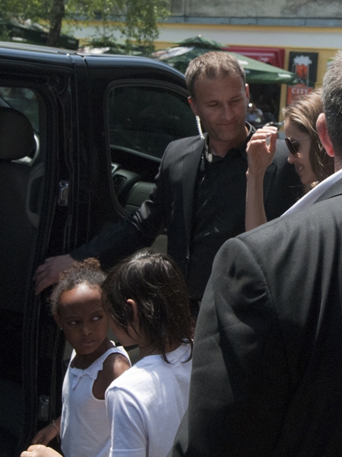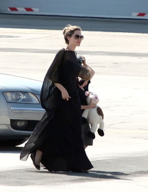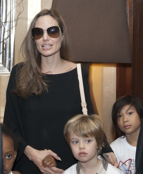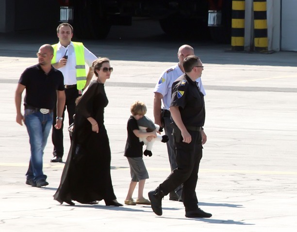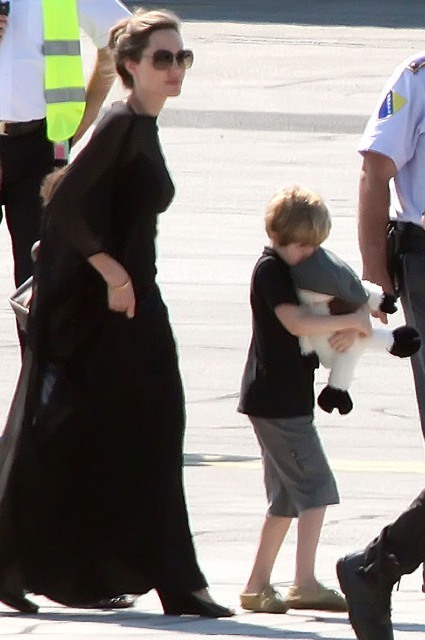 Do they draw straws? What is the child selection process for a Brange one-parent trip? I’m sure in this case it’s something boring. Like Maddox is off at camp, or maybe with dad and grandma Pitt for a racial sensitivity photo opportunity, and the twins are still too young to come along for this one. That leaves Pax, Miss Zahara, and the Chosen One Shiloh with their mother Angelina Jolie in Sarajevo this weekend. The Jolie was there to attend the Sarajevo Film Festival. She lectured on Saturday at the Sarejevo Talent Campus for an audience of 100 aspiring artists. She was also named Honourary Citizen of Sarejevo.