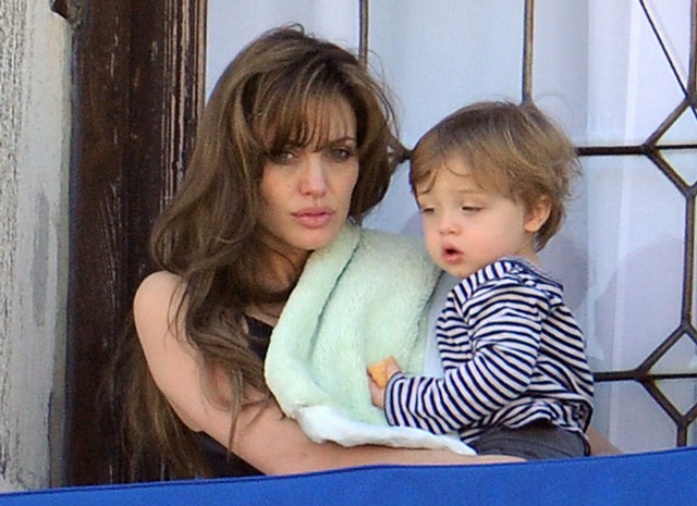 KL is obviously the one she’s holding (unless she’s holding Vivienne, which isn’t impossible considering the point of this post) and you can see the Shiloh in a few of the shots standing in the background and then squatting to get a better look at the scenery while chewing on a snack. Or wait, maybe that’s Vivienne? The photo agency says Shiloh. We’ll go with Shiloh. These Brange genes, right? The kids look totally the same. And the Jolie is super super beautiful right now too. I like her with thicker hair and soft fringe. Am jealous of the soft fringe. But the soft fringe can’t happen in my 30s. It’s very bad luck. Angie really should grow it out as soon as she can.