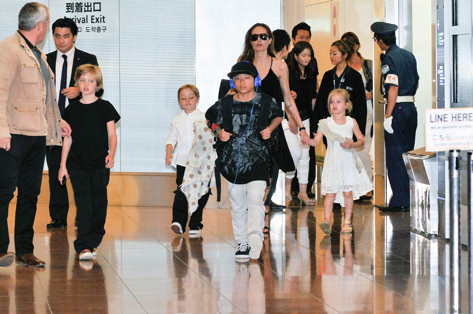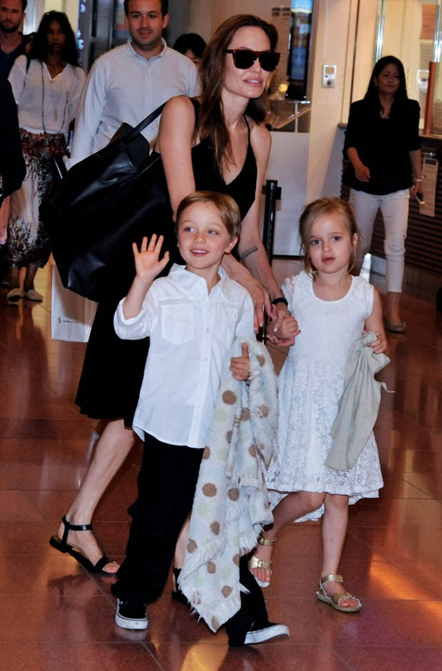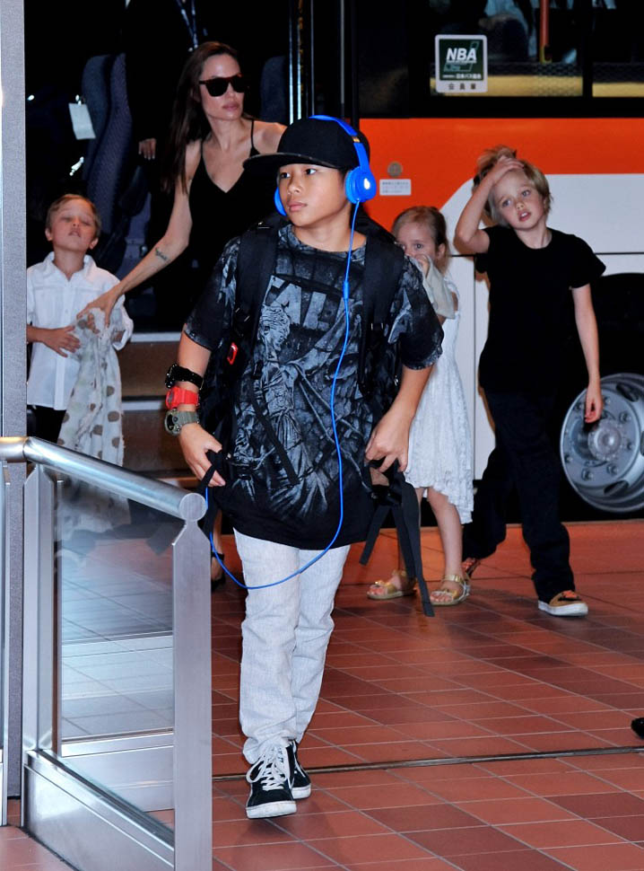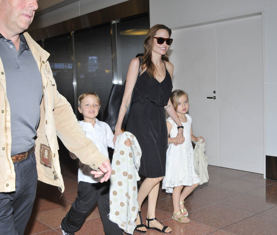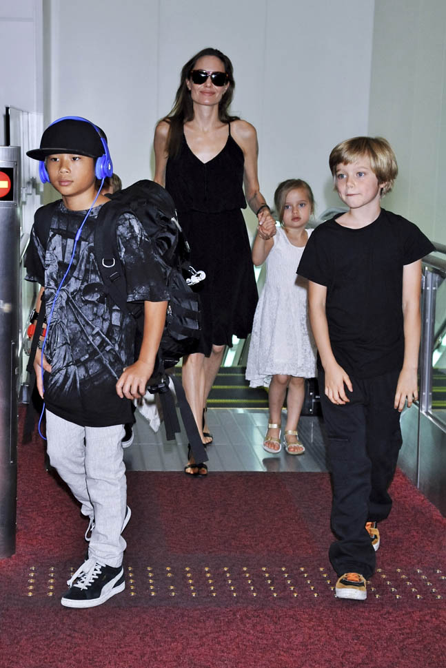 Angelina Jolie arrived in Tokyo on Saturday ahead of today’s Japanese premiere of Maleficent – those shots are coming up in the next post. She had four of the six with her, I guess because Maddox and Miss Zahara accompanied her and Brad Pitt to London a couple of weeks ago for the Global Summit To End Sexual Violence In Conflict. So, in this case at least, we know how they made the decision – which child combinations get assigned to which travel commitments. It’s rarely this clear though. And still a fascinating mystery.