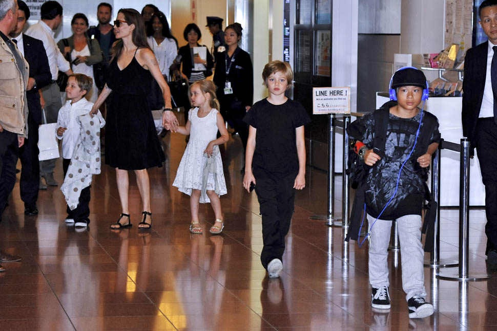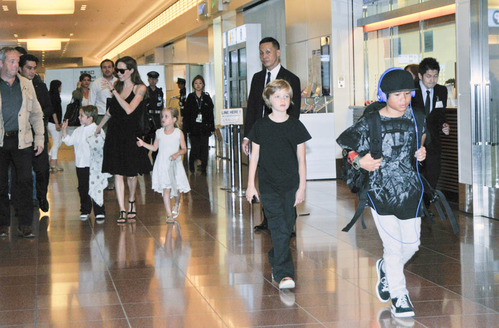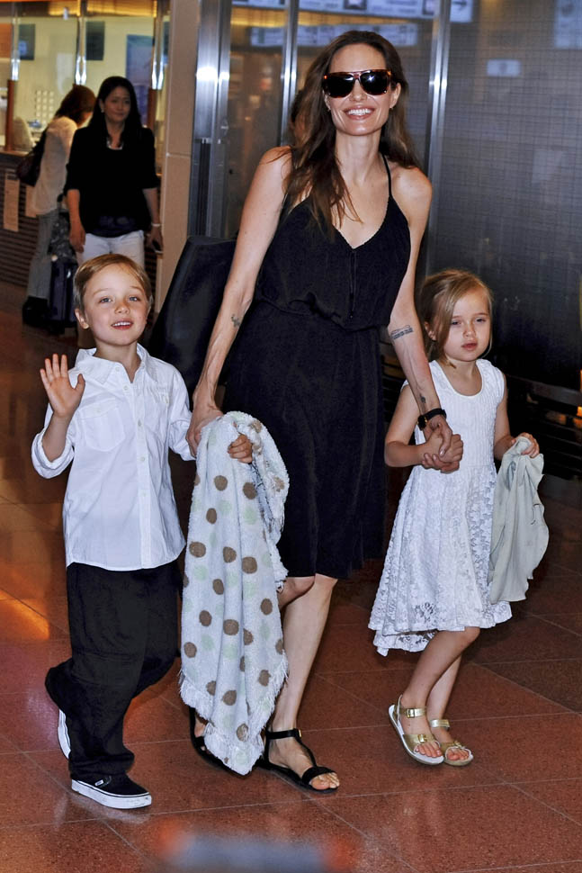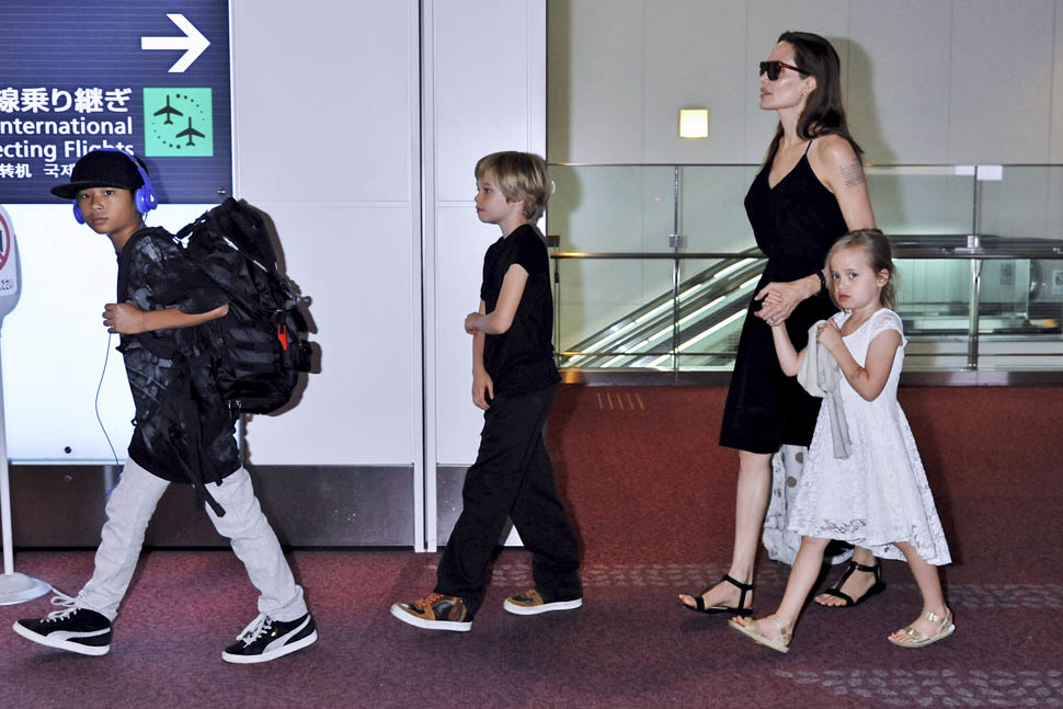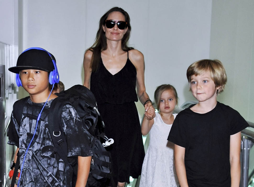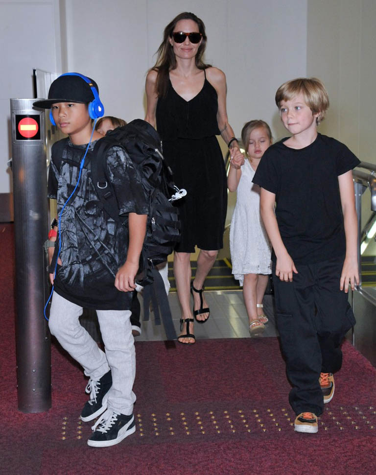 Angelina Jolie arrived in Tokyo on Saturday ahead of today’s Japanese premiere of Maleficent – those shots are coming up in the next post. She had four of the six with her, I guess because Maddox and Miss Zahara accompanied her and Brad Pitt to London a couple of weeks ago for the Global Summit To End Sexual Violence In Conflict. So, in this case at least, we know how they made the decision – which child combinations get assigned to which travel commitments. It’s rarely this clear though. And still a fascinating mystery.
