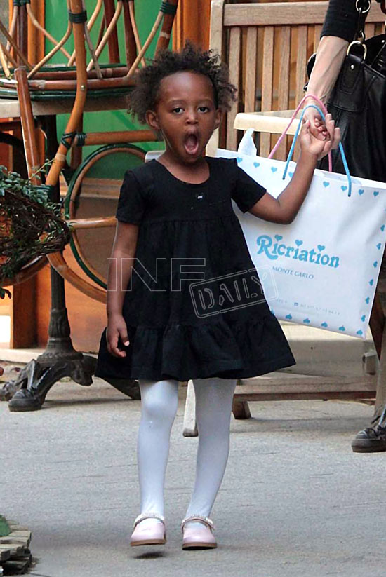 Here they are, the Pitts girls shopping in Monaco. I love Miss Zahara’s expression when she’s yawning – like she’s so over being photographed. As for the Chosen One – she really is a perfect blend of Brad and Angie, non?