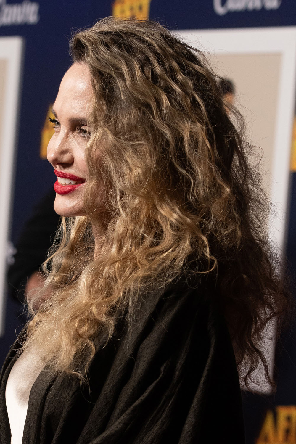 I was going to post about Angelina Jolie yesterday but I ran out of time. She was at the premiere of Maria at AFI Fest and showed up with curly hair, just like it was styled in her recent editorial for CR Fashion Book. The texture is actually a little less tight and kinky than it was in that photo shoot and a side part here instead of a middle part, and for me the middle part was better, but I do like that she tried something different for a public appearance – if not with her fashion than with her hair. There’s also a sexy bedhead vibe on the carpet at AFI that she might be playing with and I’m not mad at it.