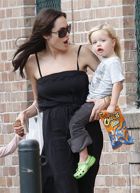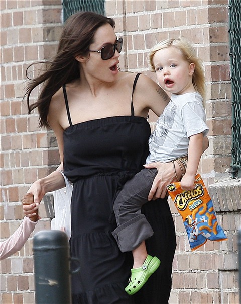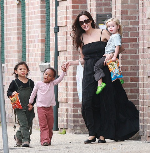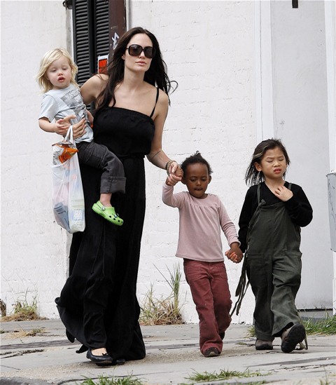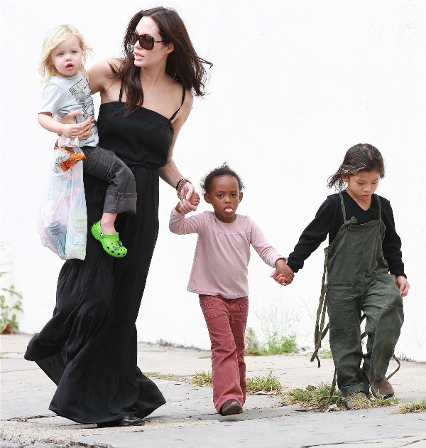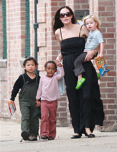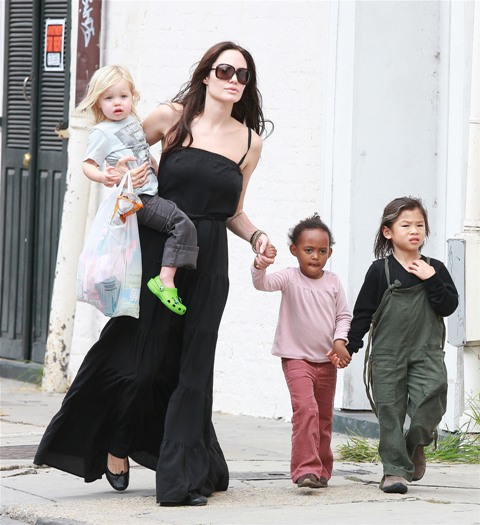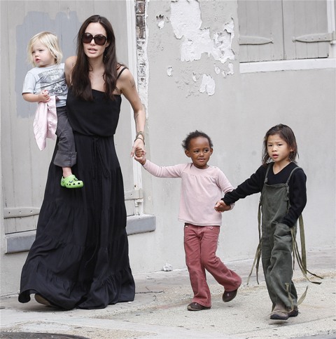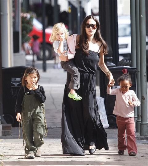 Angelina took Maddox, Pax, and Miss Zahara to an art store in New York without the Chosen One. Before the internet child protection agency could move in to accuse her of hating her biological child though, Angie moved to strike first today in New Orleans bringing out the Shiloh for a little family walk.