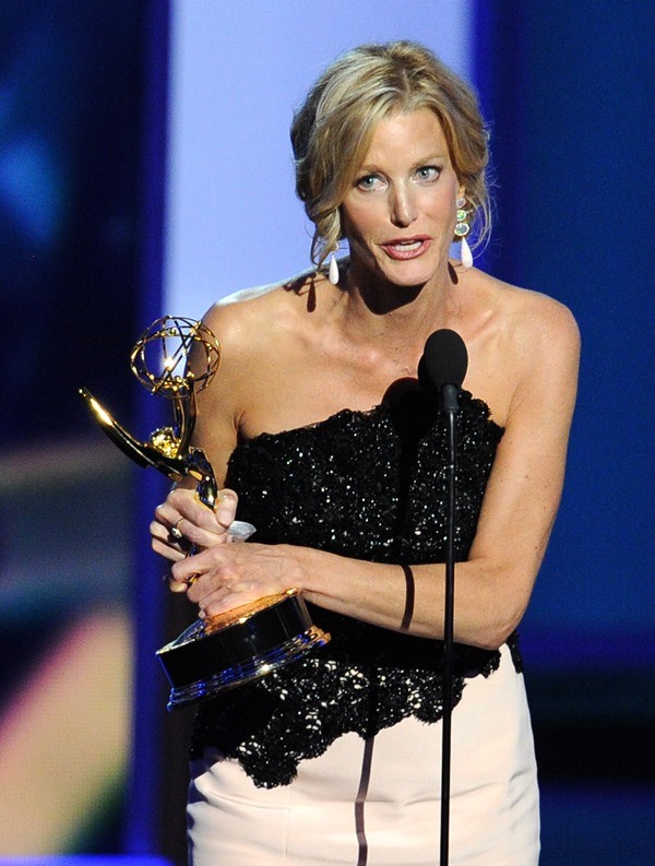 So in 4 months, at the Globes, because she’s just jumped several status points now, I really hope Anna Gunn leaves behind the Monique Lhuilliers, the Reem Acras, the Badgley Mischkas, the Romona Kevezas. Make the call, Anna. Make the call.