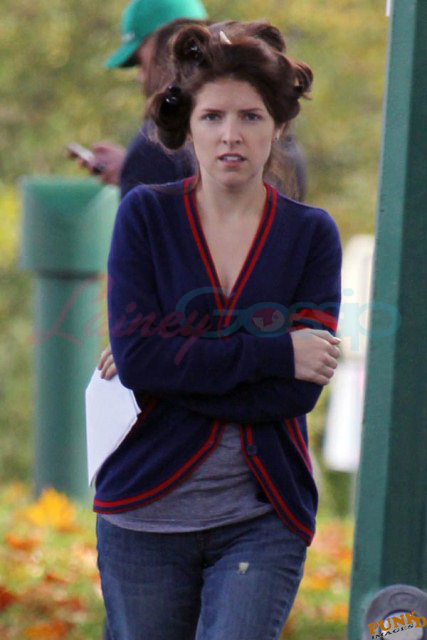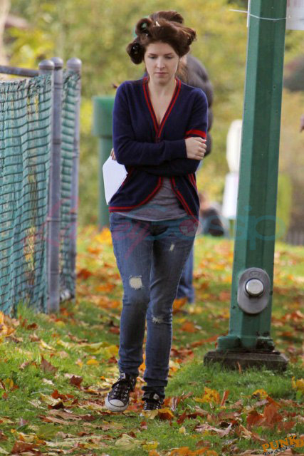 Anna Kendrick and the cast of Live With It (Seth Rogen, Joseph Gordon-Levitt) are back in Vancouver on reshoots for the film. Here she is on set today working on her hair. They’re making movie hair! I like how they use clips instead of rollers. Is that the trick? Will that make mine stay with body for more than an hour? It’s the slight lift around the head, I’d be happy with just that. Mine lies flat, flat, flat right against my skull.
