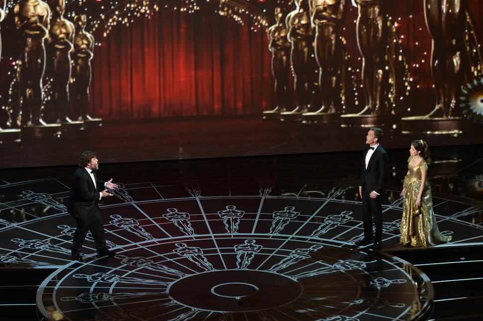 What a night for Musical Theatre Nerds! We are legion and we are getting ever stronger. And it surprised nobody that if you’re doing a musical sequence, you get Anna Kendrick to come on board and pick things up. And Anna Kendrick will deliver for you, no matter what. I mean if I were being demanding, I would say that I wish she’d done something other than cutesy Cinderella – there are very few people who are going to see The Last Five Years and know that she can sing in a modern way. And I mean, Anna Kendrick is doing fine, she doesn’t need me to be worried about her career. But I think, in a situation where she’s doing her musical theatre thing, and kicking it with Jack Black, and holding it down (very low down…to the ground…short people amuse me) with Kevin Hart, I just think maybe she should negotiate that she gets to tell a dirty joke or two in her Cinderella getup so people who don’t know don’t think she’s Anna Hathaway.