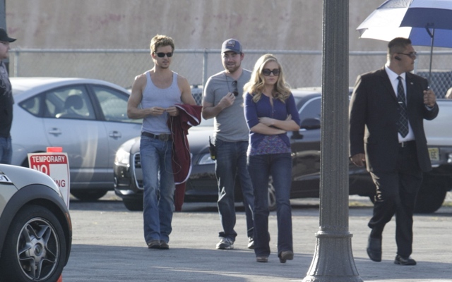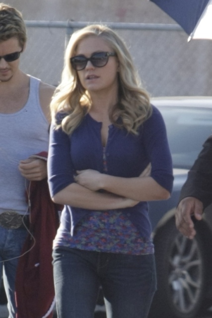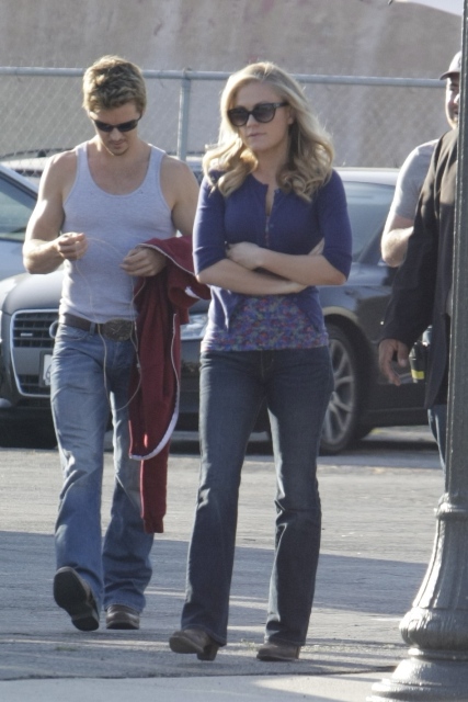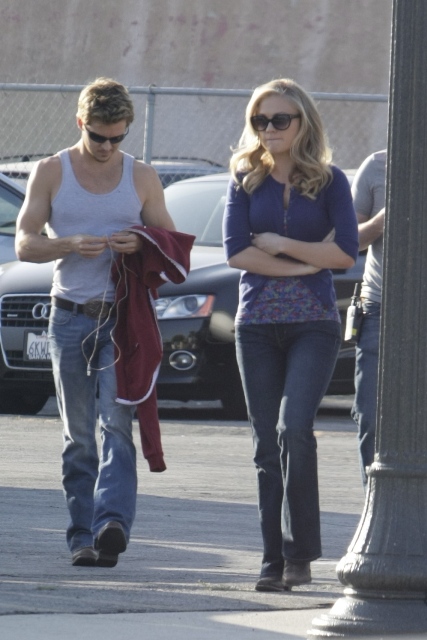 True Blood Season 4 premieres on HBO and HBO Canada on June 26th at 9pm. Here are Anna Paquin and Ryan Kwanten in LA yesterday heading to set. Good to see that Jason Stackhouse’s uniform still consists of a beater tank.