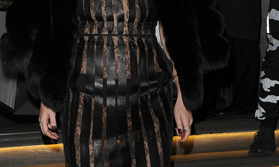 I like the idea of this for sure. But in order to make room for all of those strips, without having the dress weigh 50 pounds, those pieces have to be cut really thin. And when they’re cut that thin, the way they’re bunching, it kinda looks cheap, right? And tacky? Look at the way it’s rippling right around her underwear band.