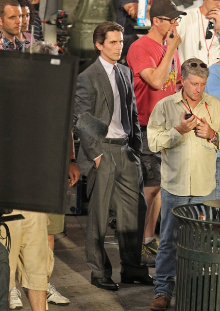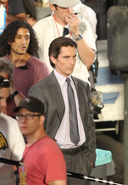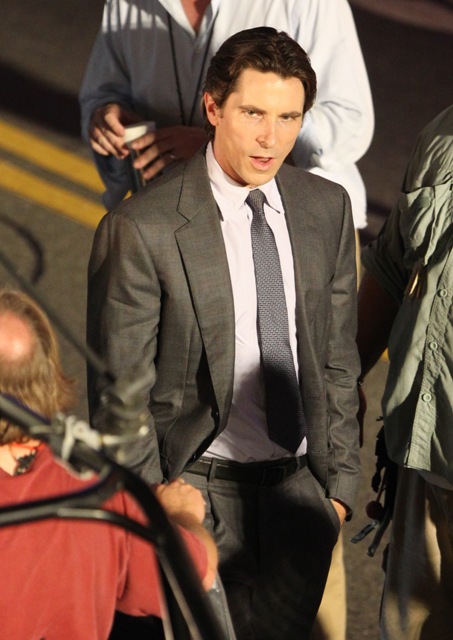 Christian Bale as Bruce Wayne was also shooting yesterday. It has been a while. He looks good. Really good. Not a skinny junkie which is my last recollection of him since The Fighter.