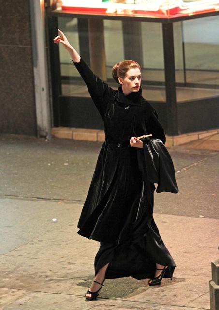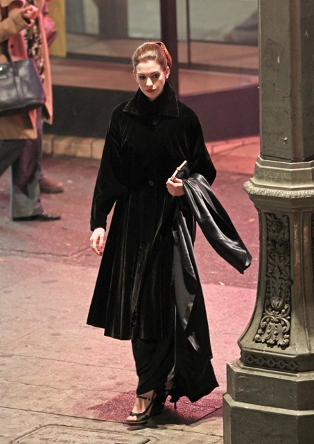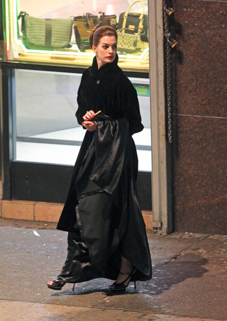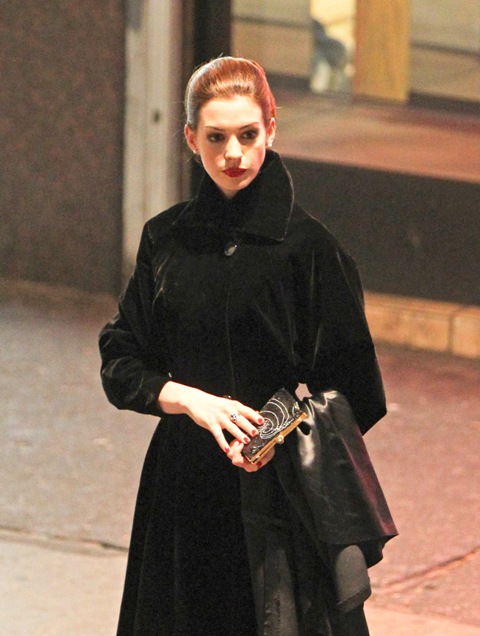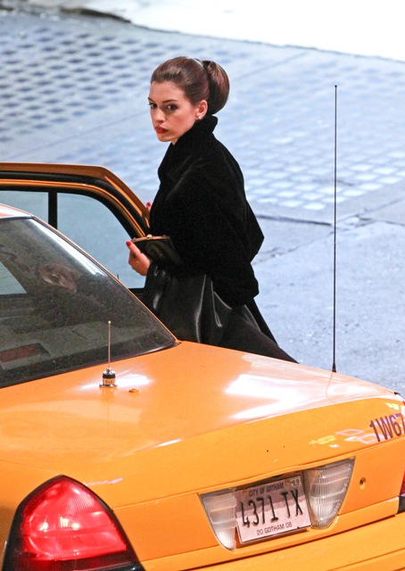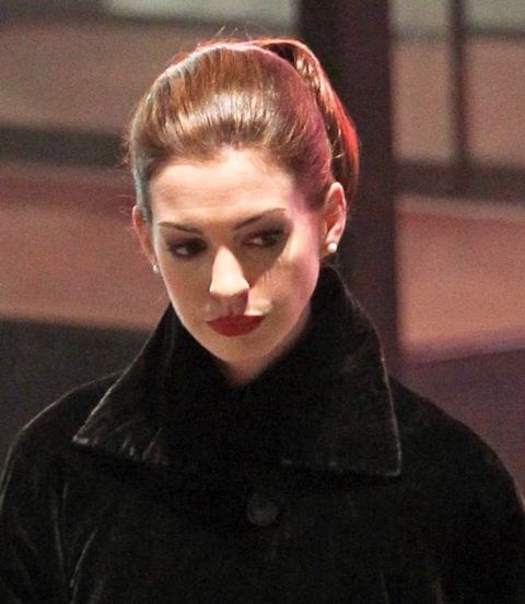 While Ali Lohan’s busy trying to turn her face into Anne Hathaway’s, the real Anne Hathaway, inspired by Sabrina, was at work on the set of The Dark Knight Rises in LA. I love the name Sabrina. More people should be called Sabrina. Anne does Audrey a lot more convincingly than Jennifer Love Hewitt, non?