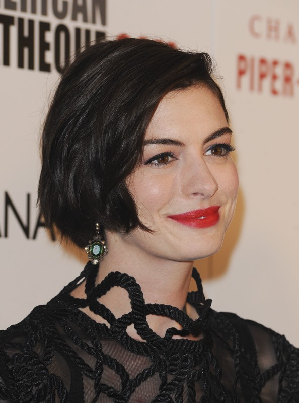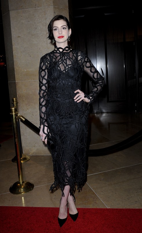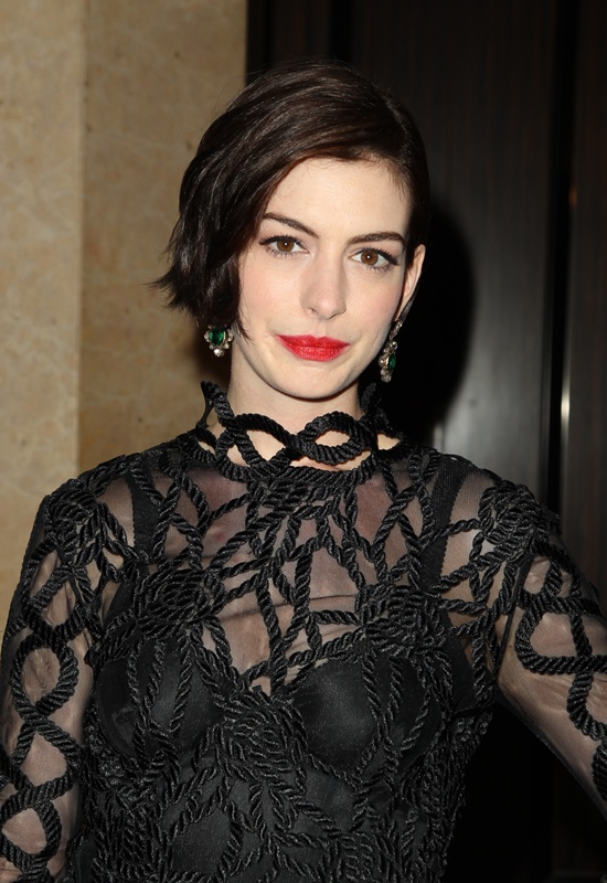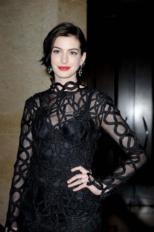 Here are Anne and Jessica at the event last night to honour McConaughey. Anne’s hair is growing out in an uneven bob. Looks really good.