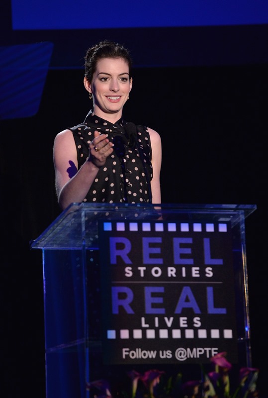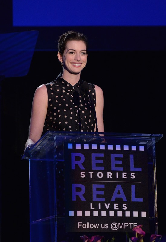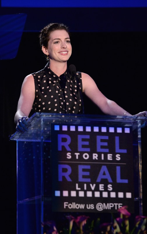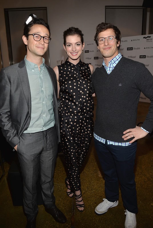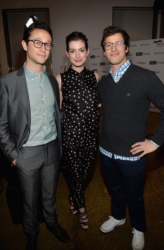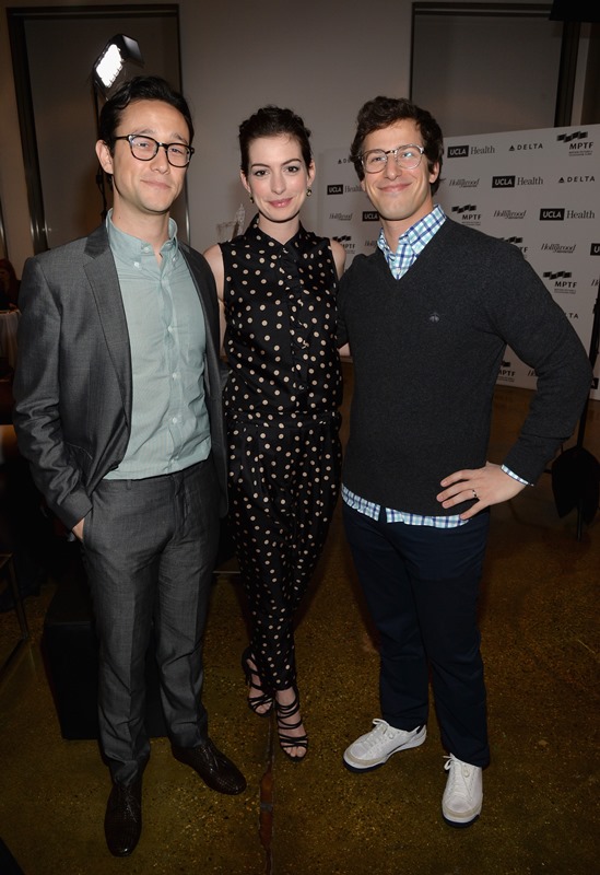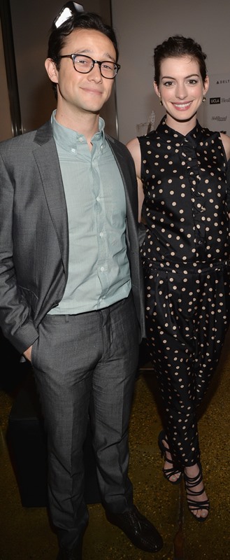 Anne Hathaway and Joseph Gordon-Levitt attended the 3rd Annual Reel Stories event to benefit the Motion Picture & Television Fund on Saturday in Hollywood. They’ve been friends for a while. They sing together. They make movies together. She makes cameos for him when he directs movies. This is an interesting relationship. Because, well, Annie is polarising. You know how you feel about Anne Hathaway. Meanwhile, JGL is your cute Boy Wonder. He’s the imaginary boyfriend. He’s the one you want in your pocket. He’s the emoticon you wish you could put at the end of all your text messages. He couldn’t possibly be smug and pretentious.