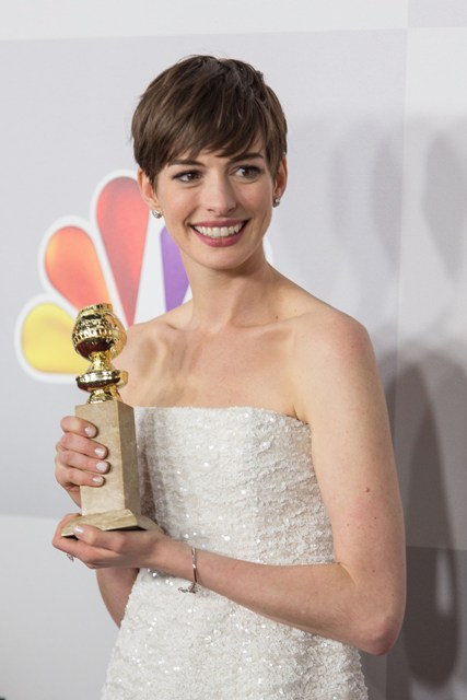 Then, when Les Miserables wins – you know, not the biggest surprise, but very nice – there are dozens of people who get up to accept the award. But only you, only YOU, Anne, who was in the movie for a mere 20 minutes, are compelled to come out in convulsing sobs and cling to Amanda Seyfried who, as Dean pointed out, was not having it.