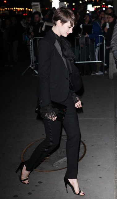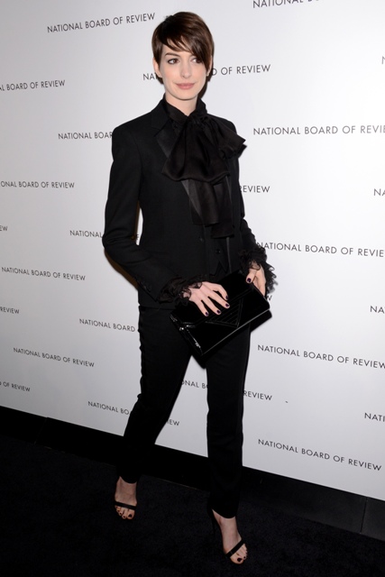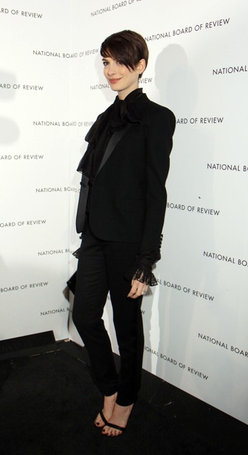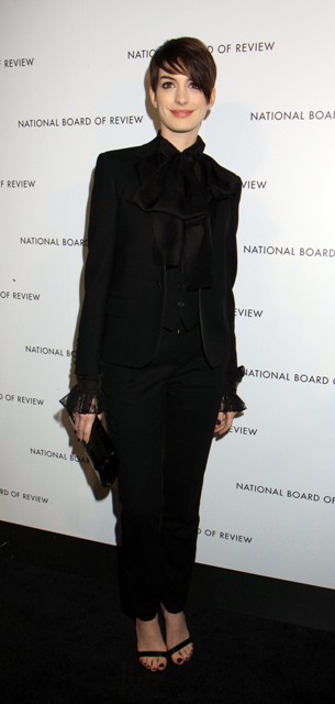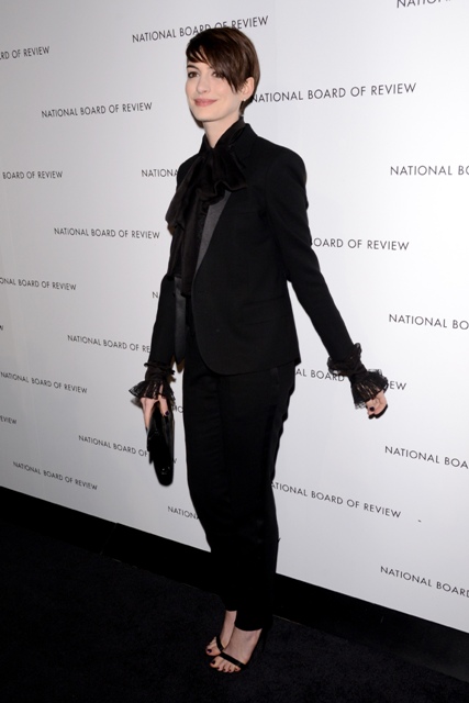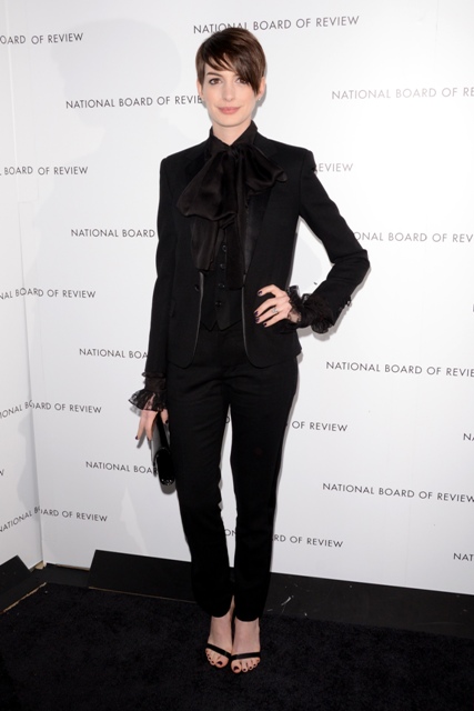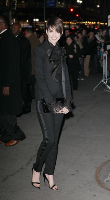 I’m just never not going to hate on a well tailored women’s black tuxedo, especially when it’s done with a ruffle sleeve and such a great neck detail. This, every day, all the time, over, I dunno, a strapless Oscar De La Renta boring dress.