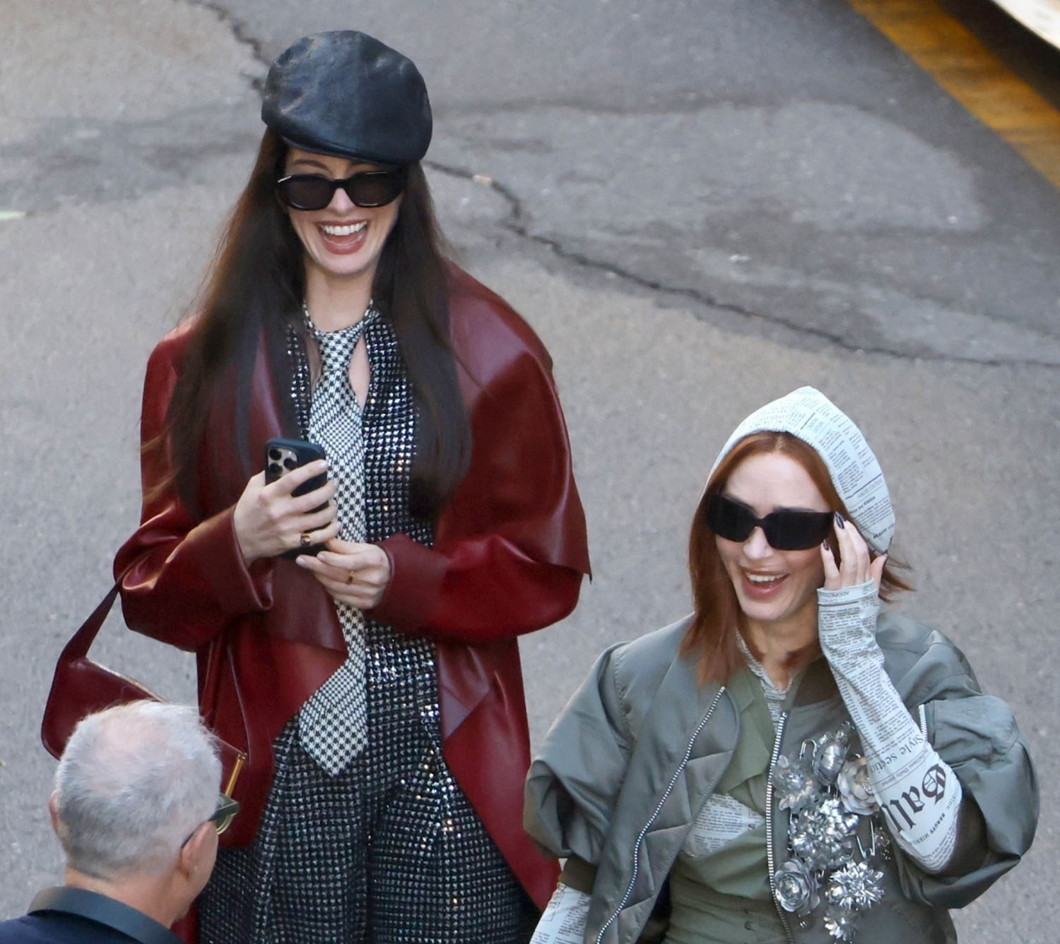 Anne and Emily Blunt were in Milan today (where Versace was presented) shooting The Devil Wears Prada 2. There’s been a whole musical chairs situation with the creative directors across fashion houses and I wonder if that’ll result in some celebrity ambassador shifts too. Earlier today I wrote about Chanel and Ayo Edebiri. Ayo was a favourite of Matthieu Blazy when he was at Bottega Veneta and she’s just been appointed the first Chanel ambassador under his stewardship. Greta Lee followed Jonathan Anderson from Loewe to Dior. Will Annie jump to Balenciaga from Versace?