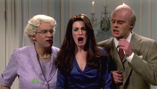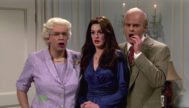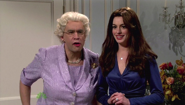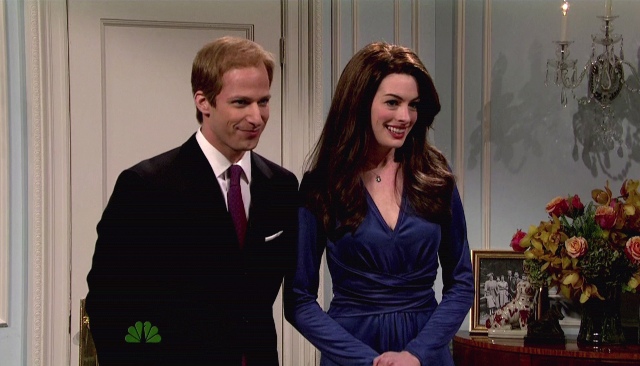 And Anne Hathaway can mimic too. Her Katie Holmes was awesome, and that’s probably the sketch everyone is talking about. I however am partial to the one about Kate Middleton and Prince William with the Queen and the Duke of Edinburgh and their hardcore cockney accents, especially when Fred Armisen lifted his leg up like a matron royal gangsta. Amazing.