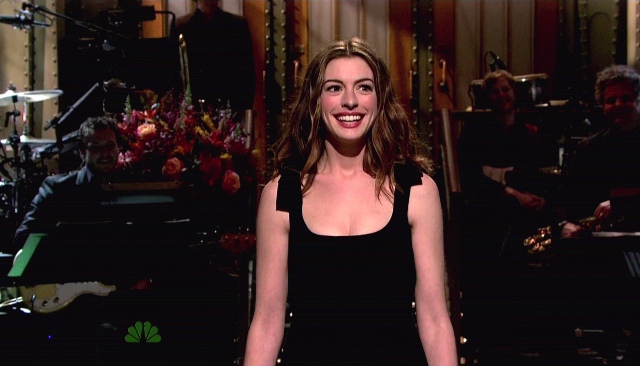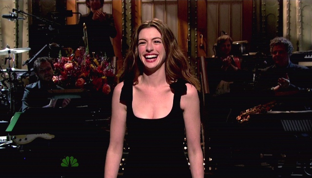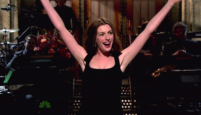So they will write for Annie. And well. Which makes it 2 for 2, Hathaway’s excellent SNL track record. But did she freak you out at the end? She freaked me out at the end. She took Effusive to a new level at the end. I mean, there’s being grateful, and then there’s too f-ckin’ much. Maybe not quite as tweaky as Joseph Gordon-Levitt’s farewell last year but close. Did you notice too?