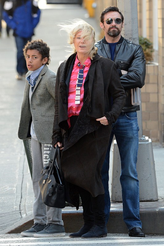 As of this morning though, Hugh Jackman was still in New York, seen here with his wife and son walking to school. I’m assuming then that they don’t need that much rehearsal time? Annie and Hugh, no, they probably wouldn’t. Russell Crowe, on the other hand, does he need the rehearsal time...?
