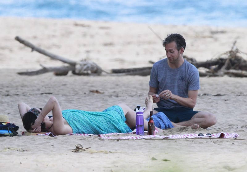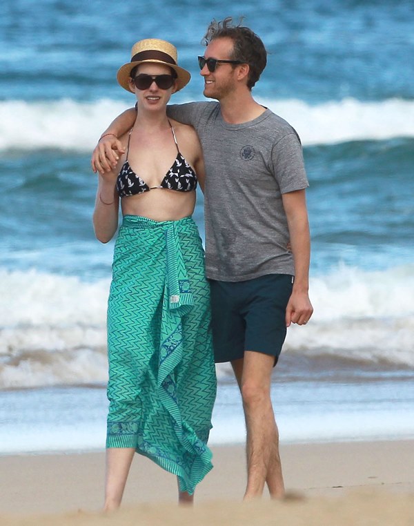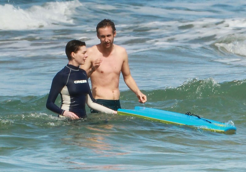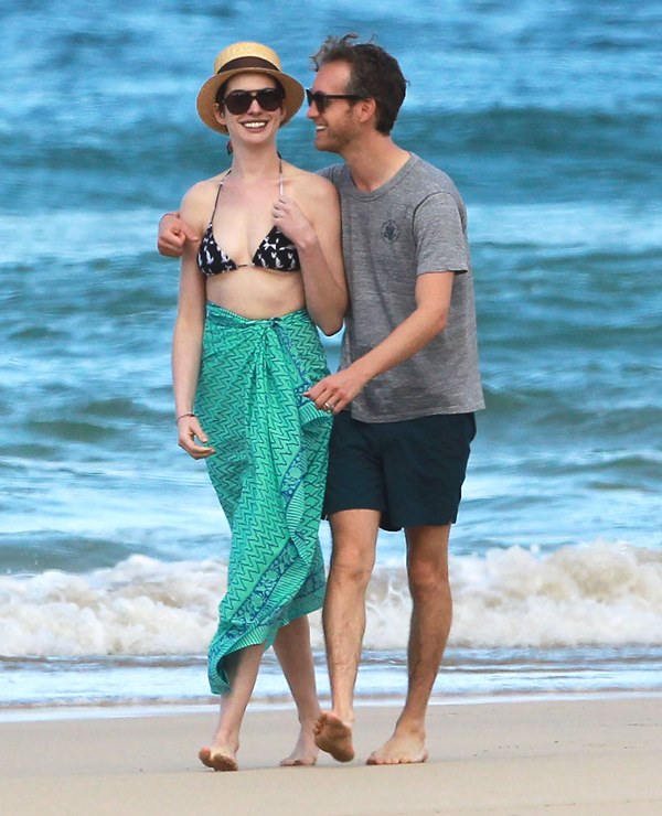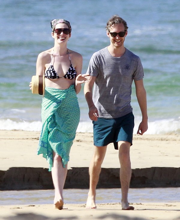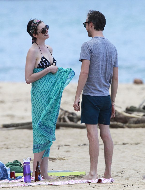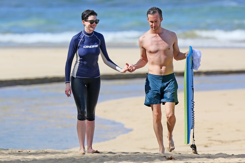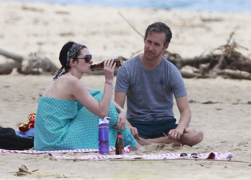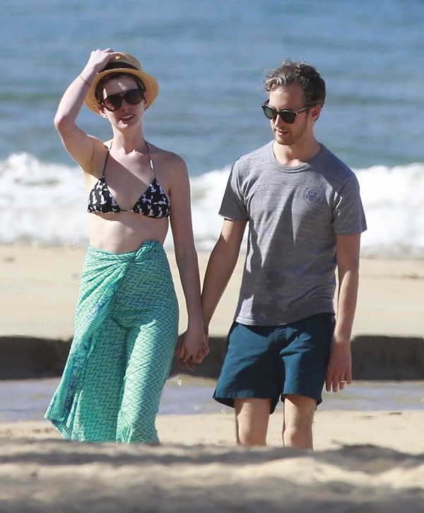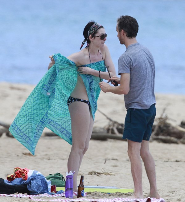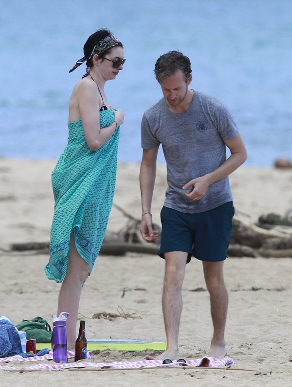 Anne Hathaway and Adam Shulman are on holiday in Hawaii. Somehow she hurt her foot. So when she came back to shore, her husband cleaned it for her by sucking on a toe and putting on a band-aid. Dude, that’s love. My husband wouldn’t do that for me. He hates my feet. I hate his feet too. His toenails are vile. So no, I wouldn’t do it for him either. I would sell jewellery, anything, to hire someone to put him on a stretcher and take it to get treated, but I would not put my mouth on his foot.