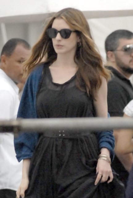 Anne Hathaway is Brazil promoting Rio. She was photographed today in Copacabana heading to an interview. I know I’ve said it before but I can’t help myself. I really, really, really love her hair right now. if I could have any hair right now, I would have her hair right now. The length is great. The wave is great. The colour is great. This has to be her best hair.